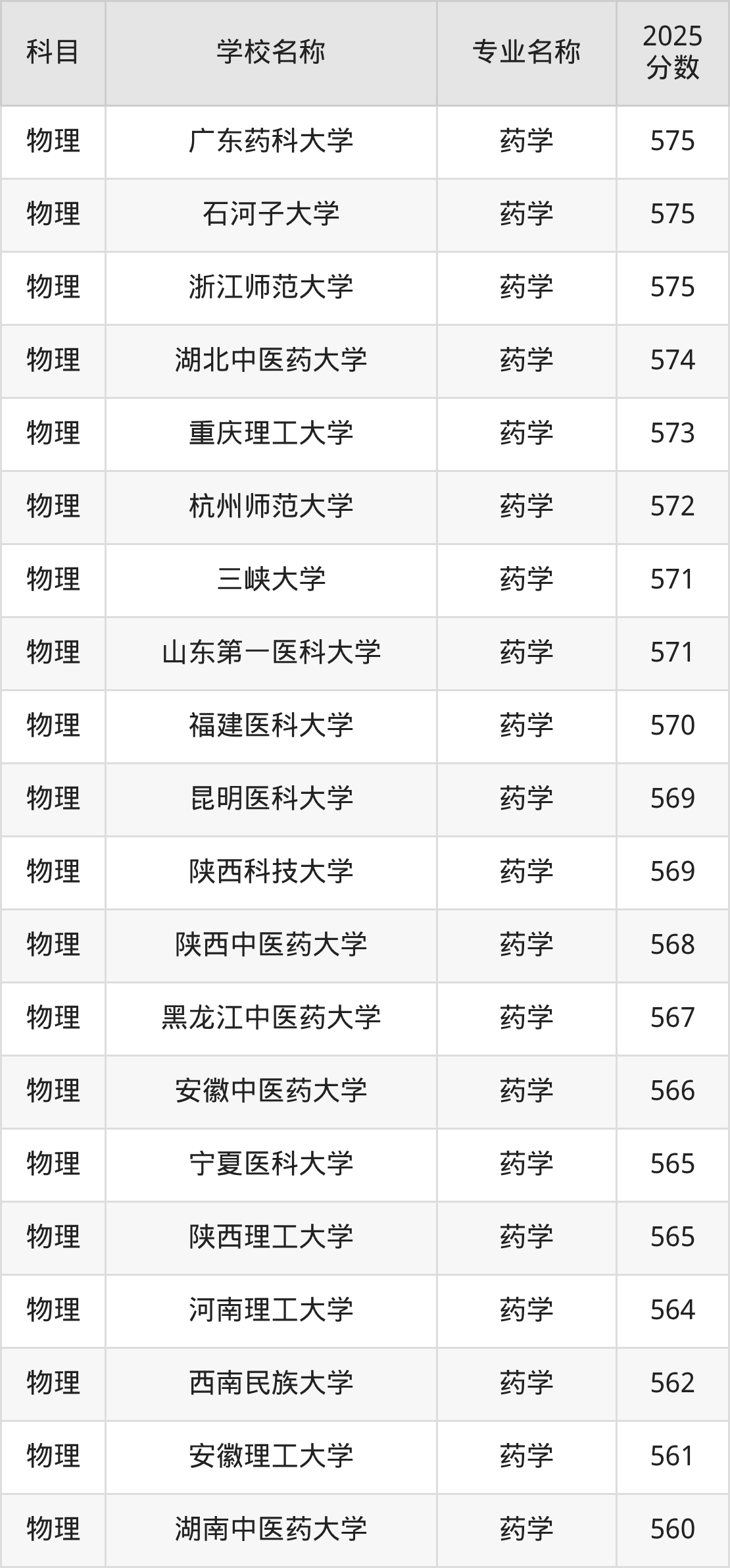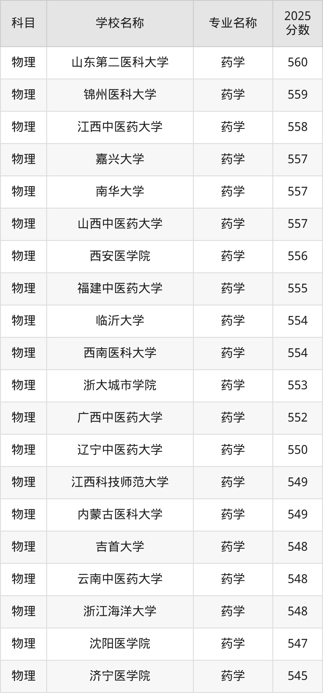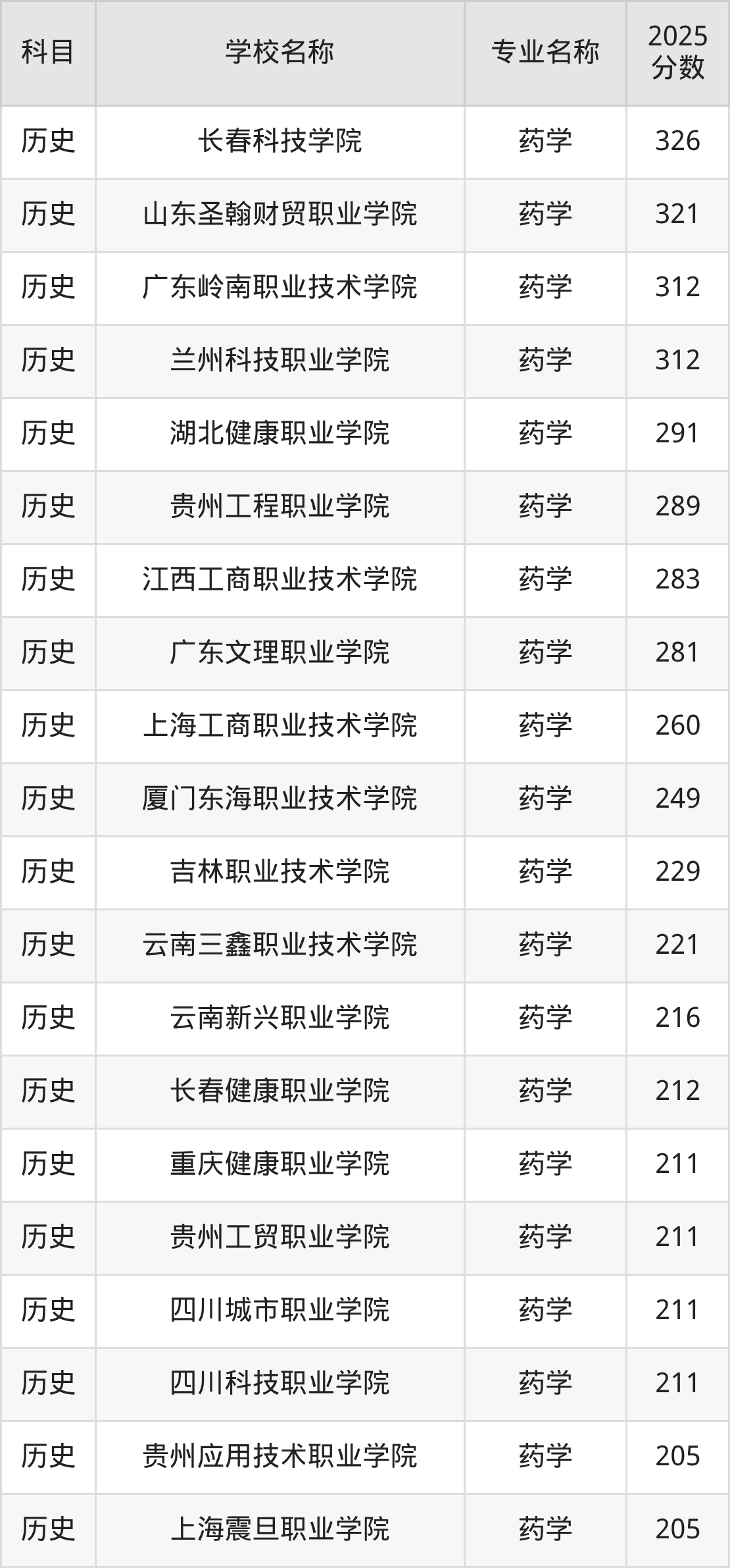 | 学校名称 | 专业名称 | 2025 分数 |