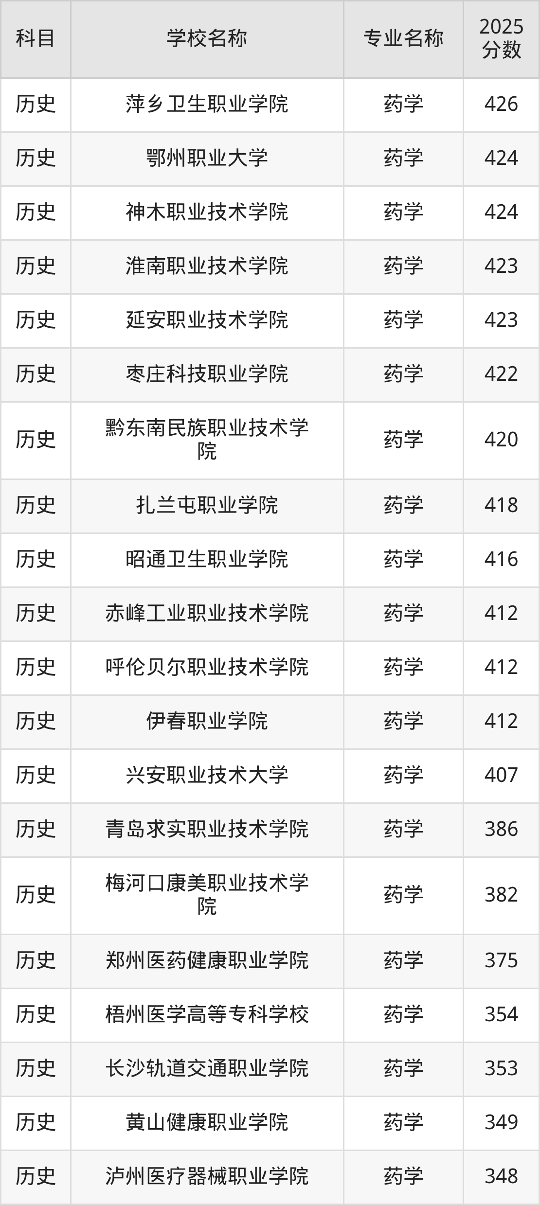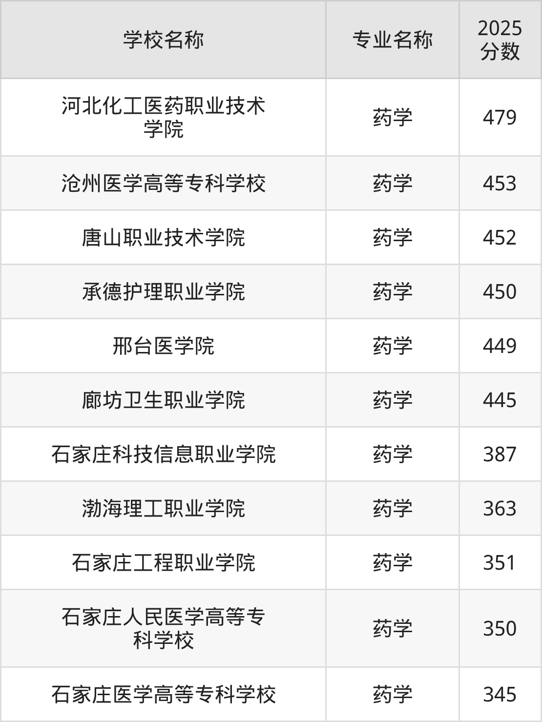 | 石家庄工程职业学院 | 药学 | 342 |