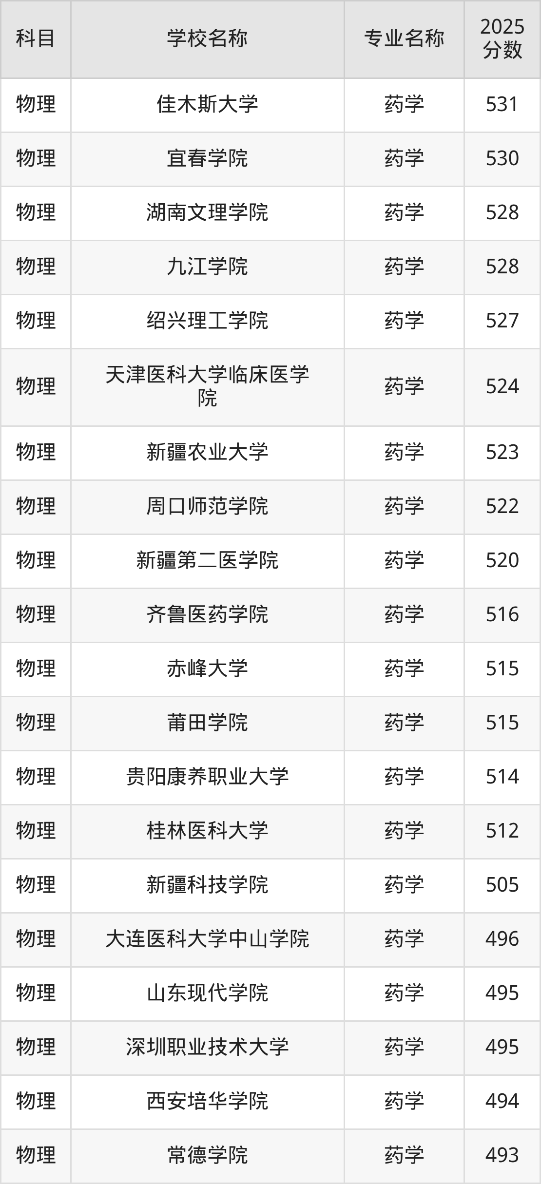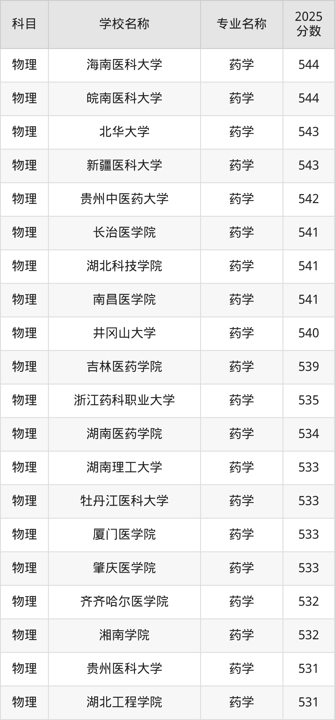 下文将为大家展示河北省大学药学专业2025年在河北高考的最低录取分数线!