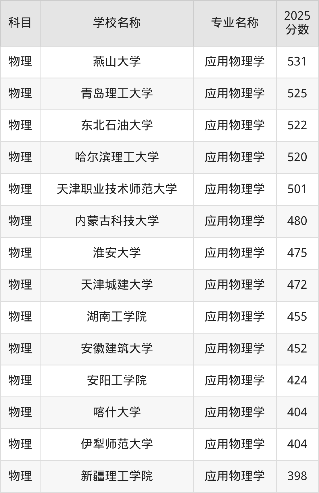 | 吉林师范大学 | 应用物理学 | 439 |