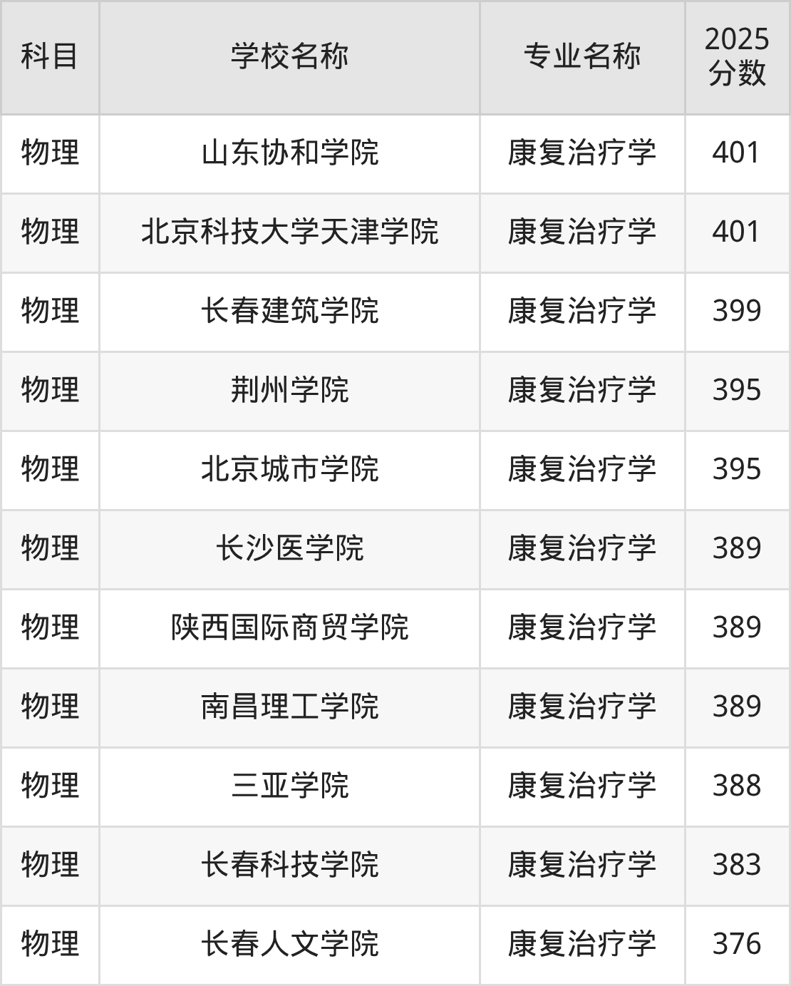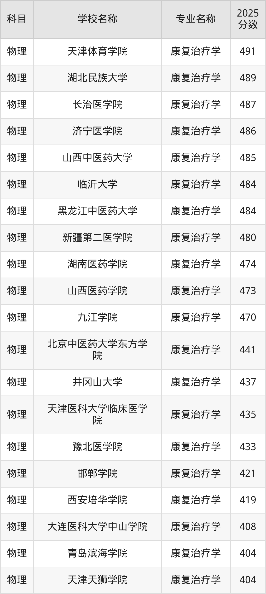 内蒙古高考物理组:康复治疗学专业的最低分是403分~456分