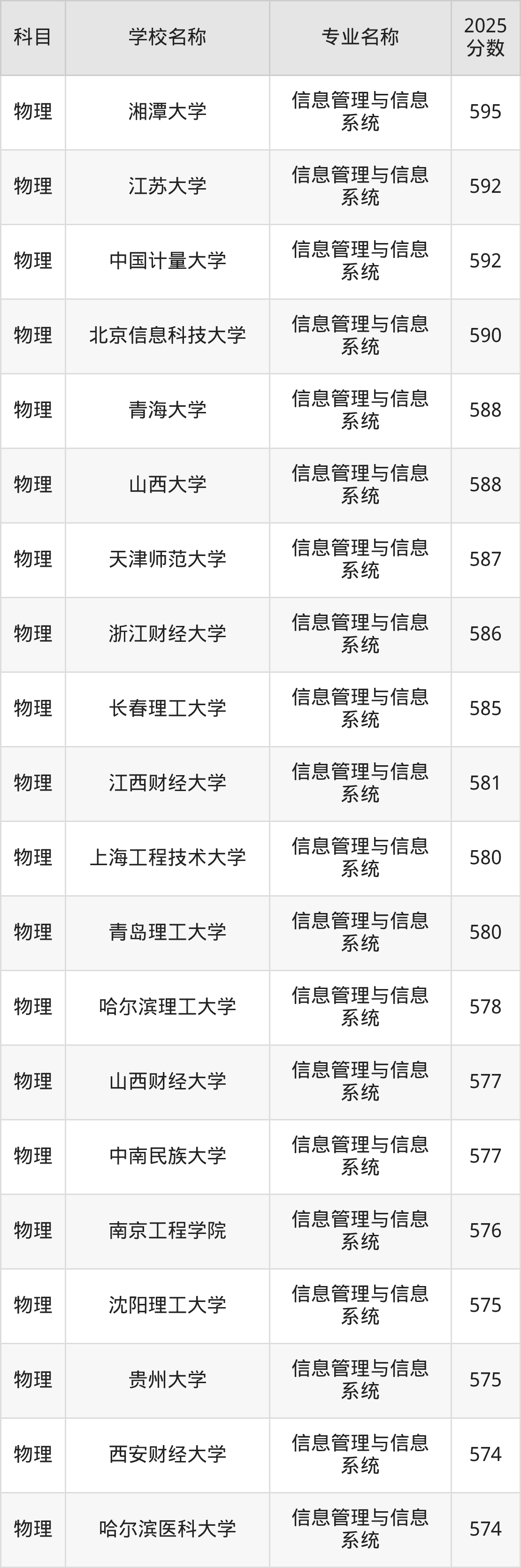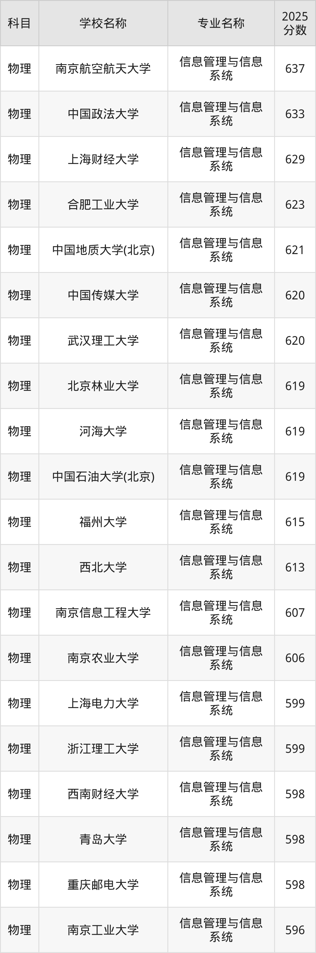 | 华北电力大学(保定) | 信息管理与信息 系统 | 614 |