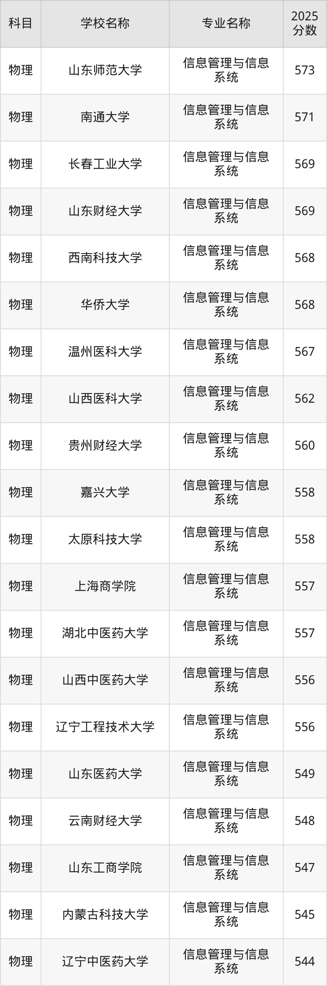 | 华北理工大学 | 信息管理与信息 系统 | 555 |