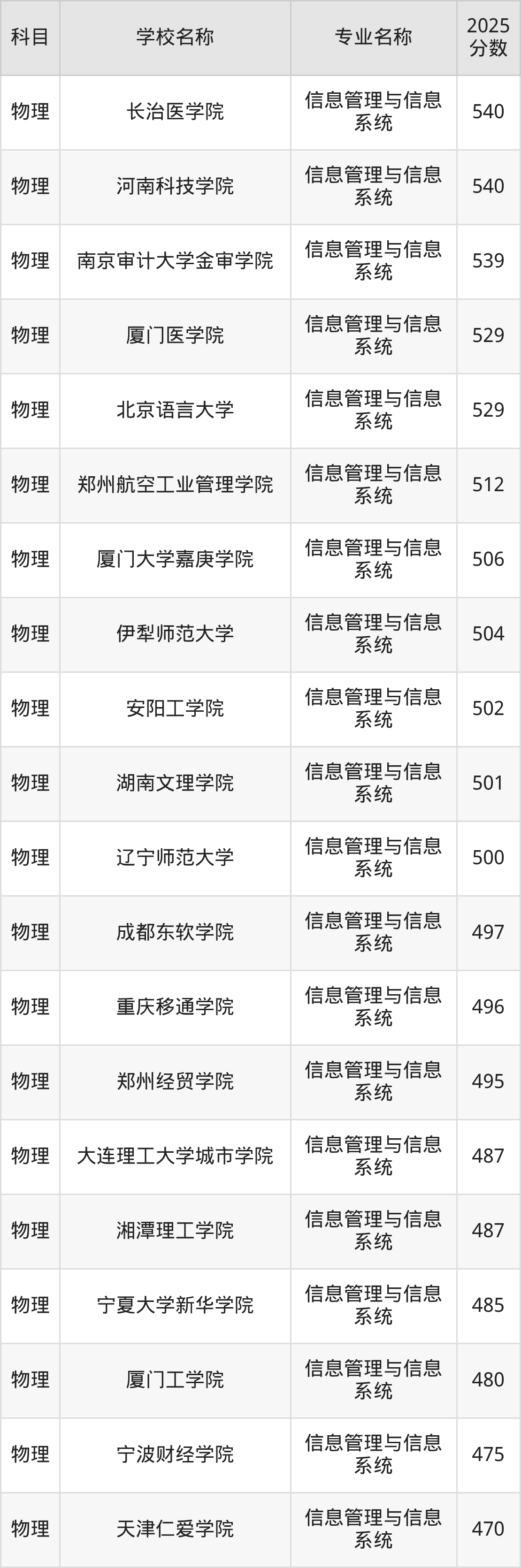 河北高考物理组:信息管理与信息系统专业的最低分是459分~619分