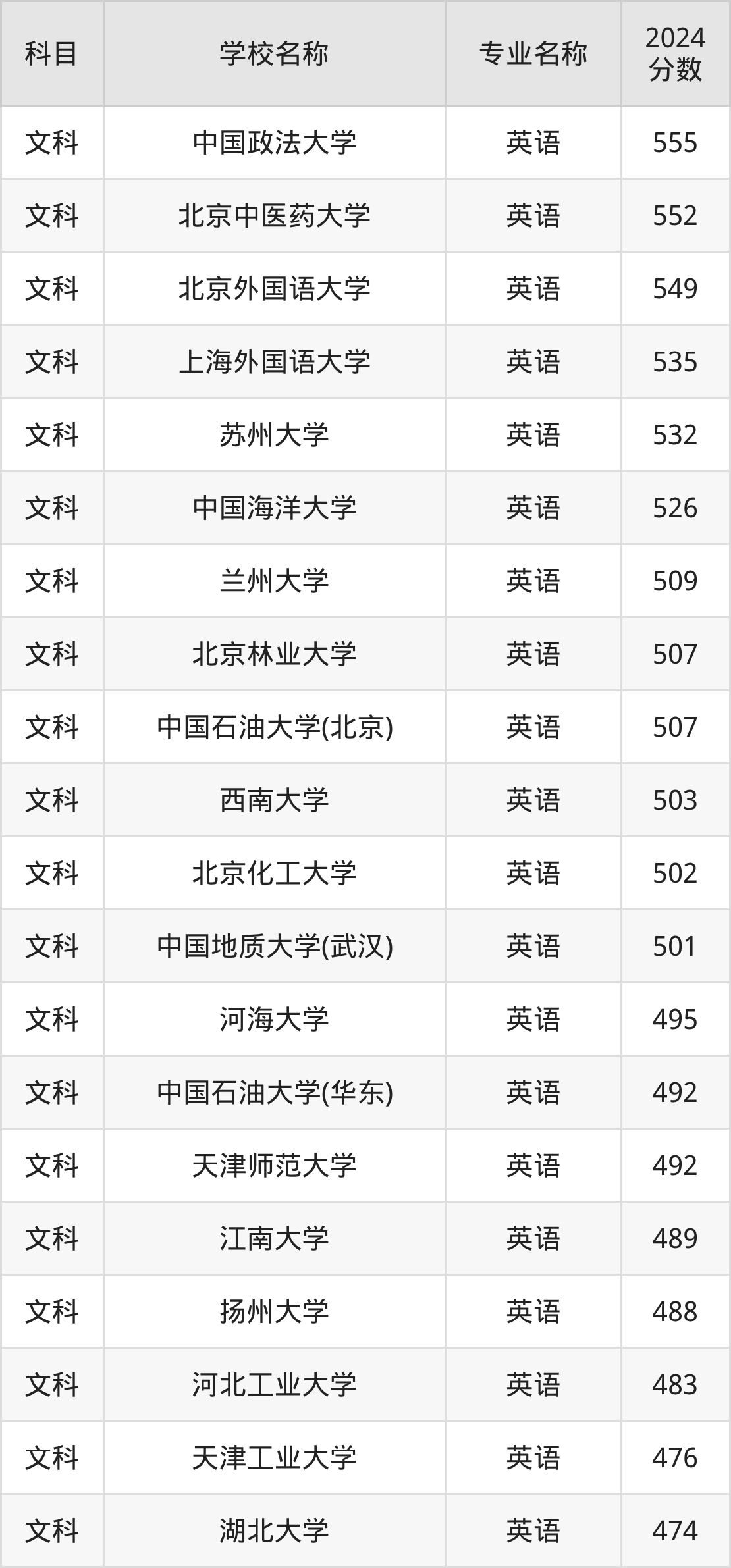 | 中国石油大学(北京) 克拉玛依校区 | 英语 | 470 |