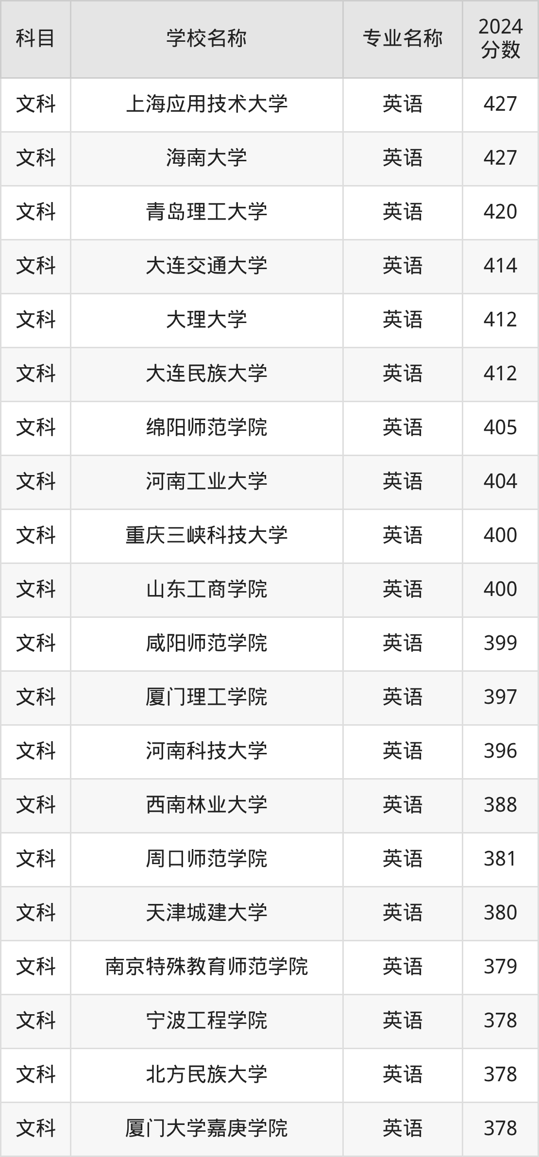 圆梦小编根据新疆2024年高考文科专业分,将开设了英语专业且位于新疆维吾尔自治区内的大学按照“录取分”从高到低排序,得出了以上榜单。