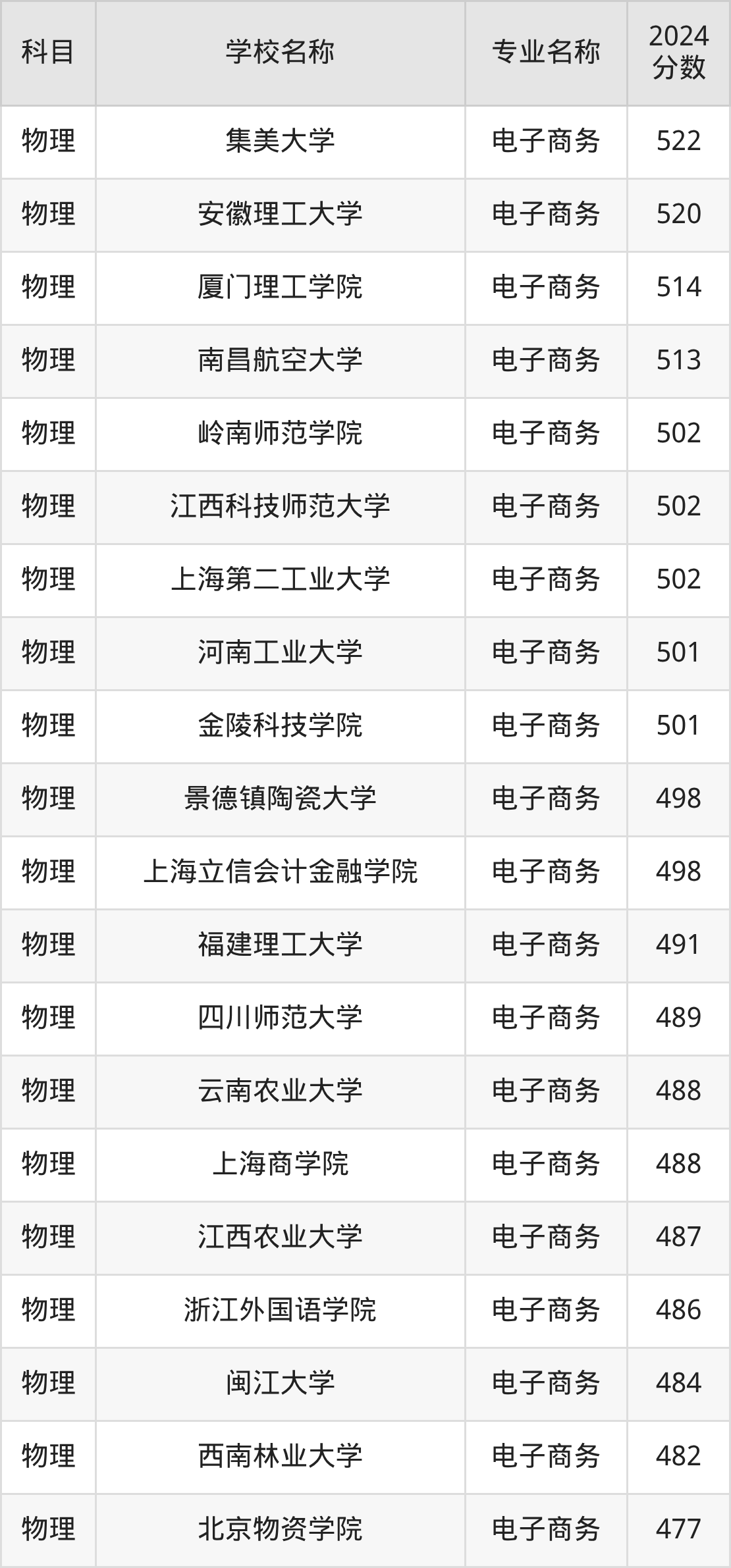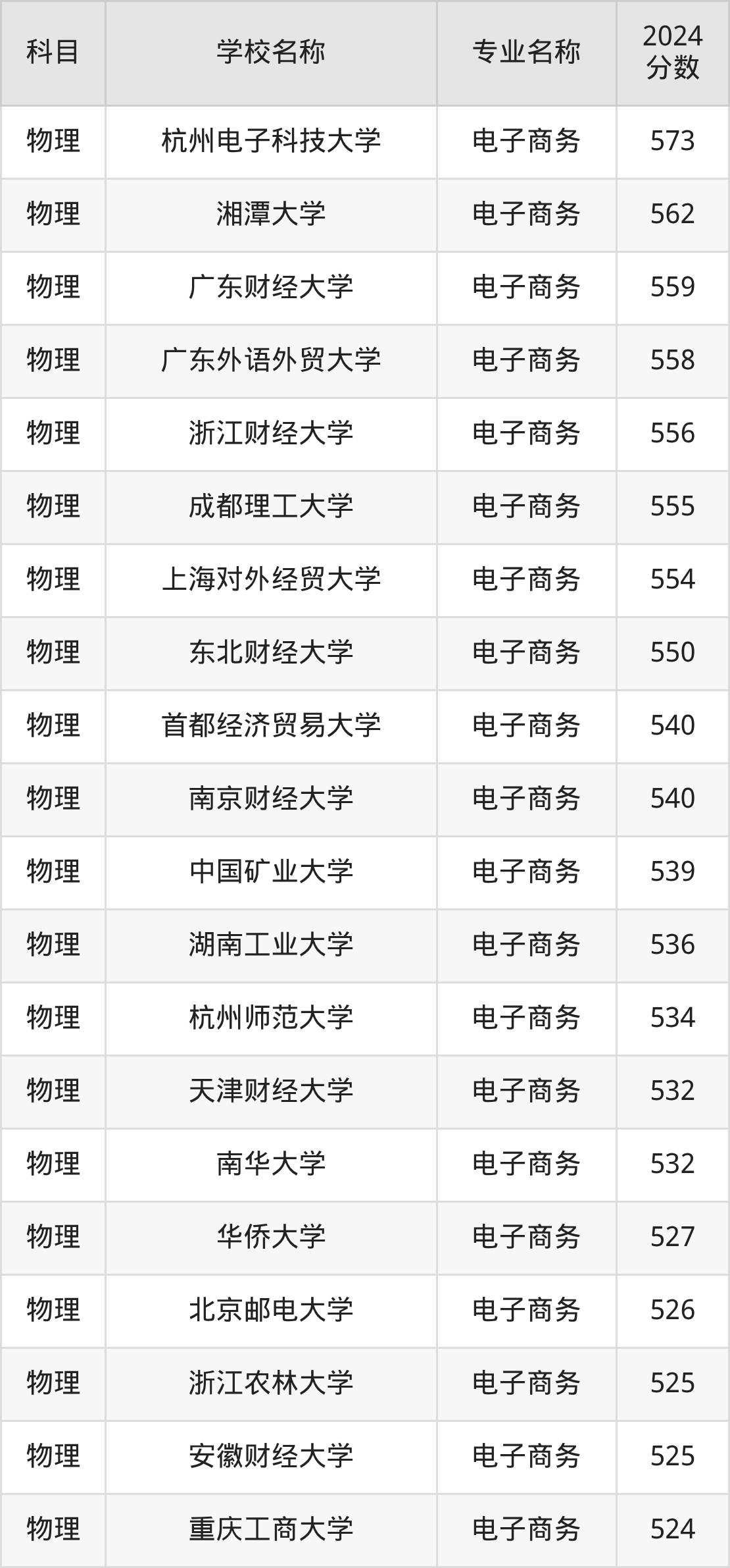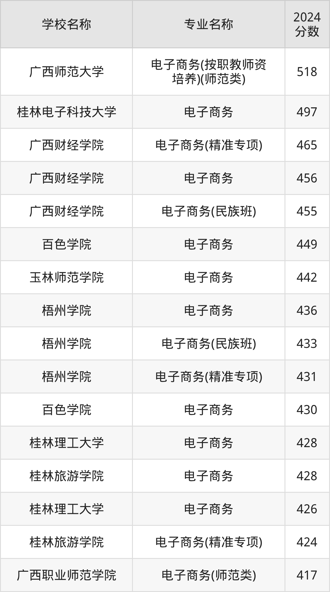 下文将为大家展示广西壮族自治区大学电子商务专业2024年在广西高考的最低录取分数线!