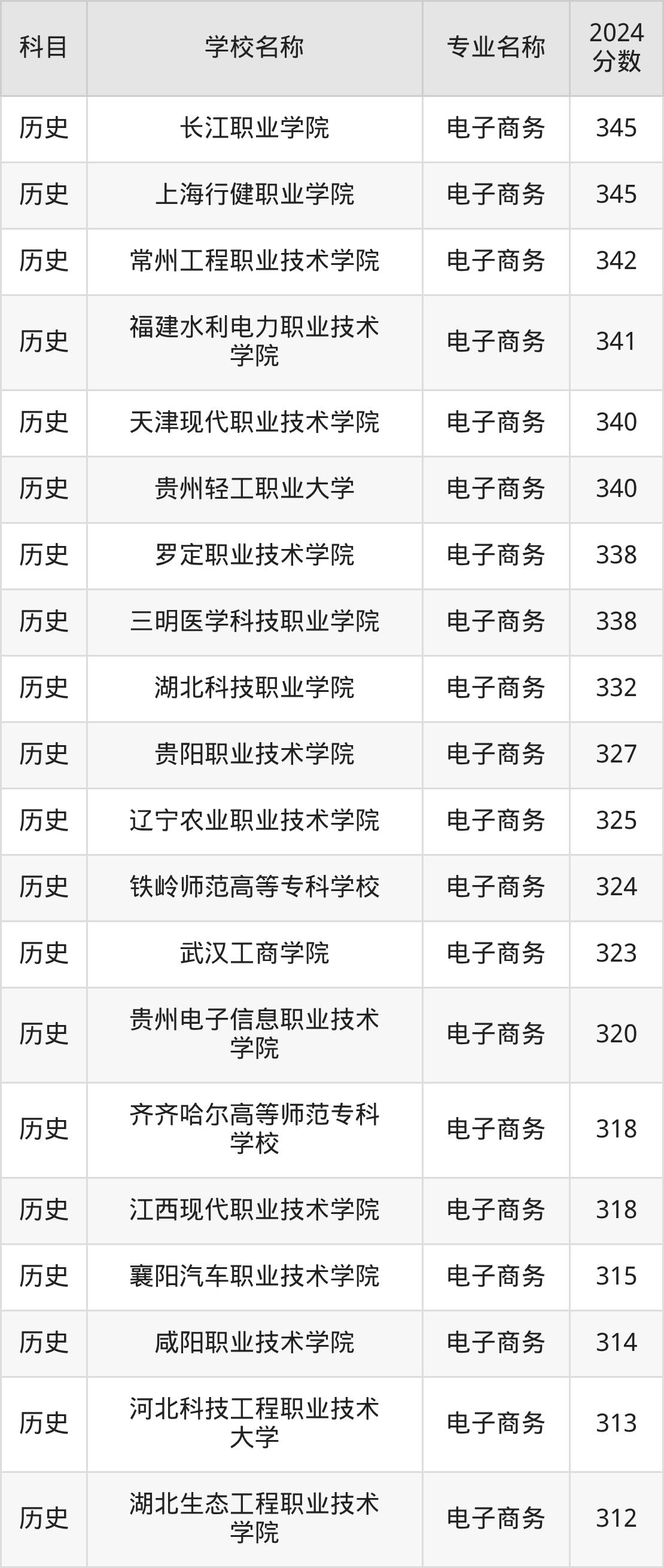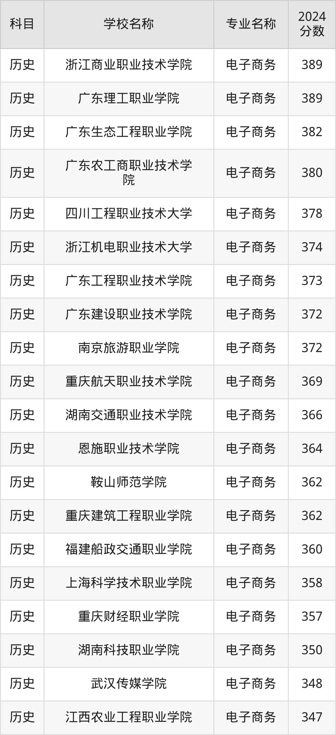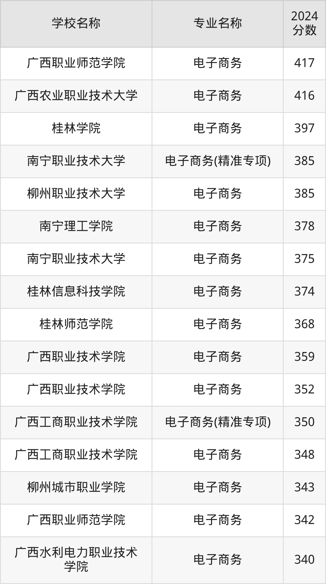 | 广西水利电力职业技术 学院 | 电子商务 | 346 |