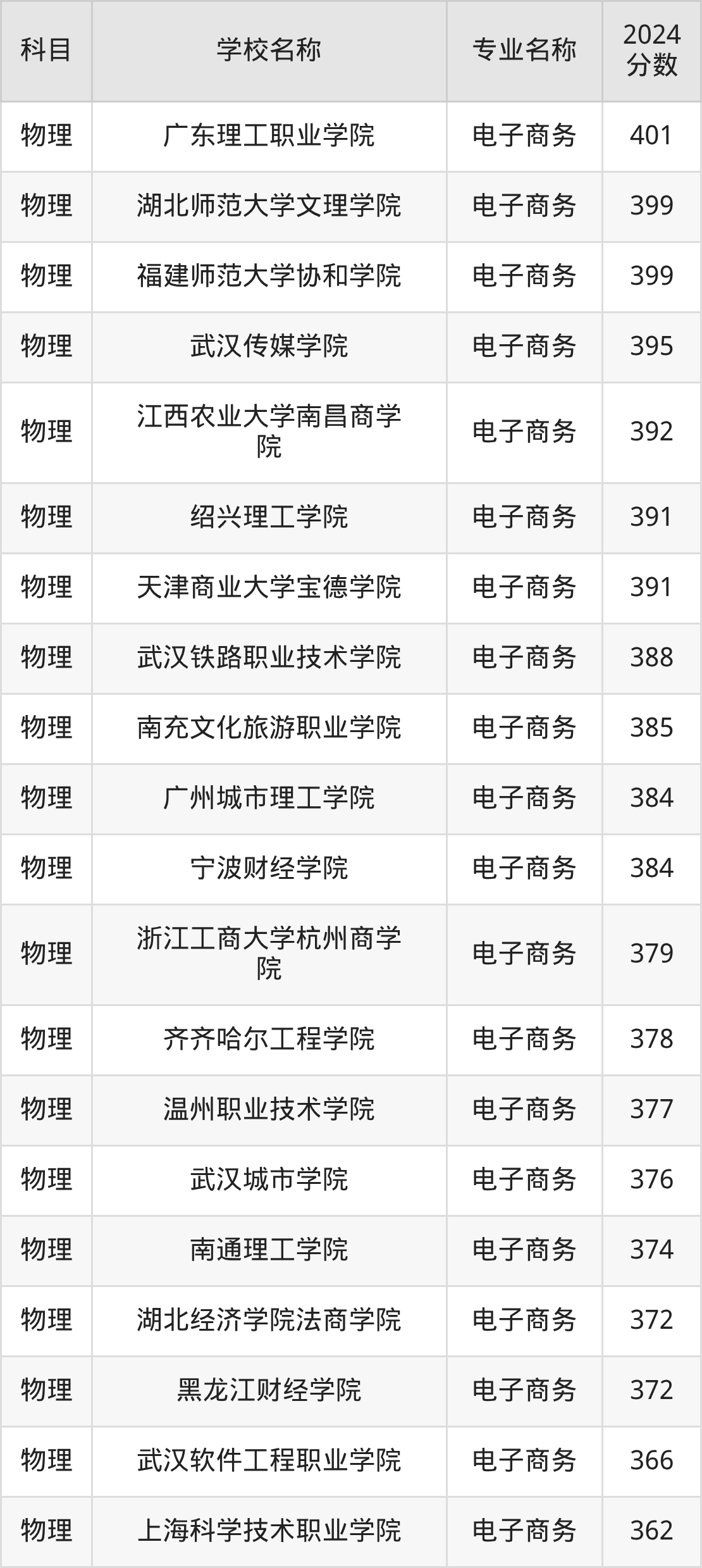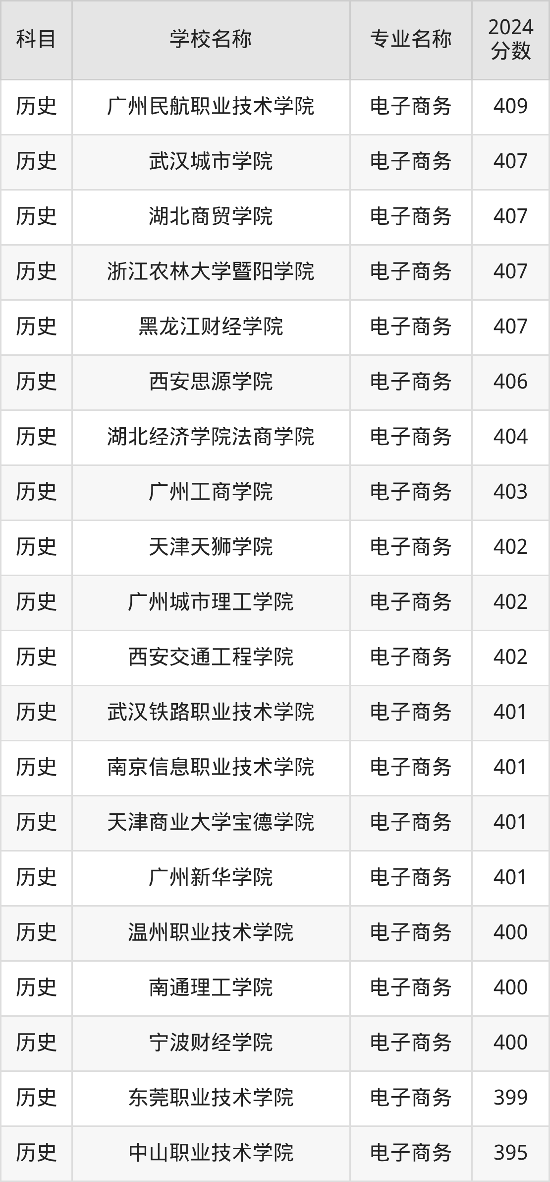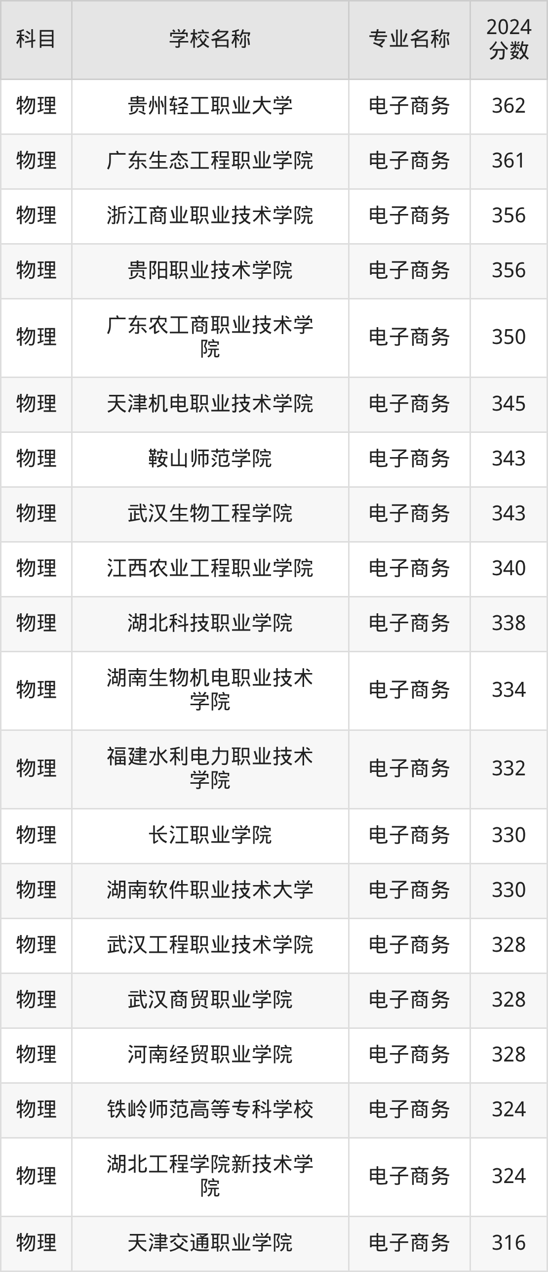 | 广西水利电力职业技术 学院 | 电子商务 | 346 |