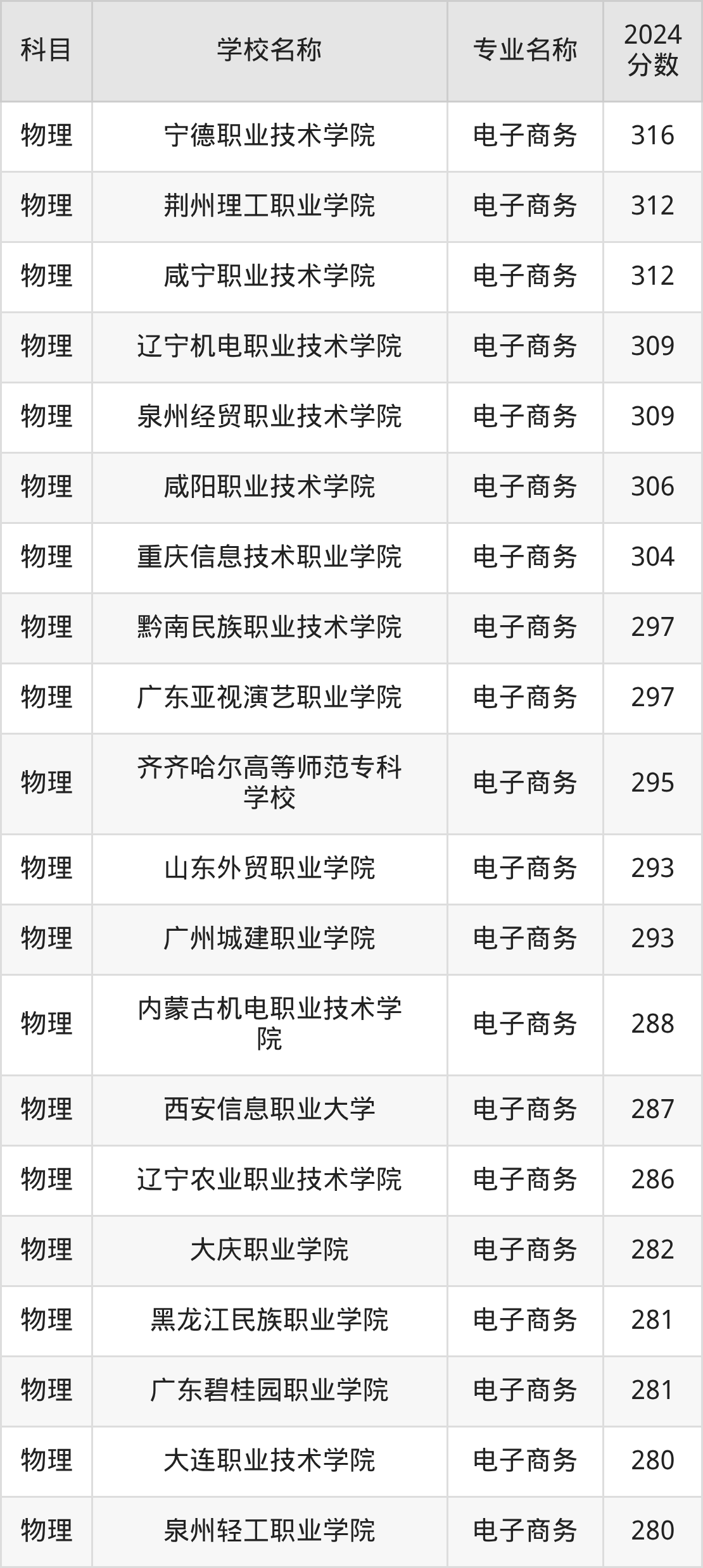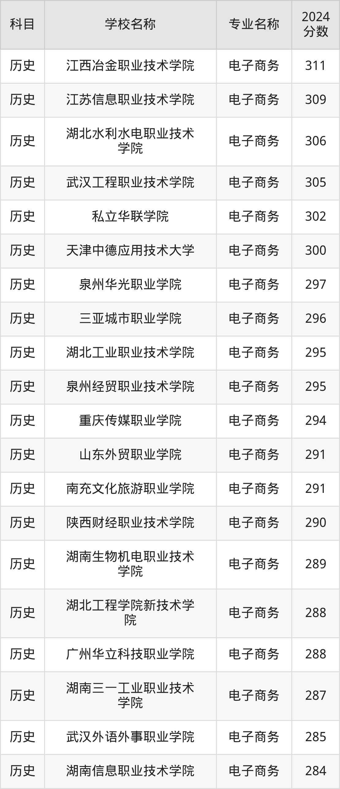 | 防城港职业技术学院 | 电子商务 | 290 |