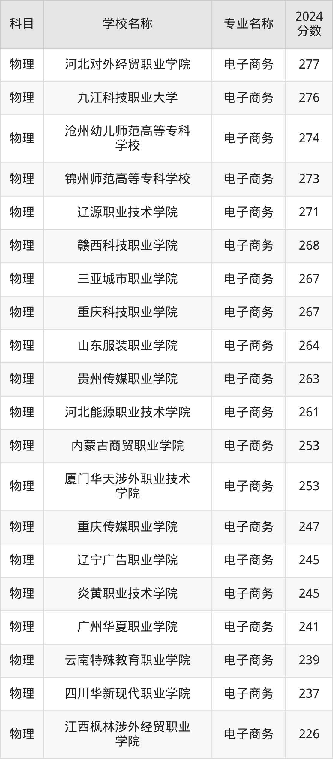 | 崇左幼儿师范高等专科 学校 | 电子商务 | 245 |