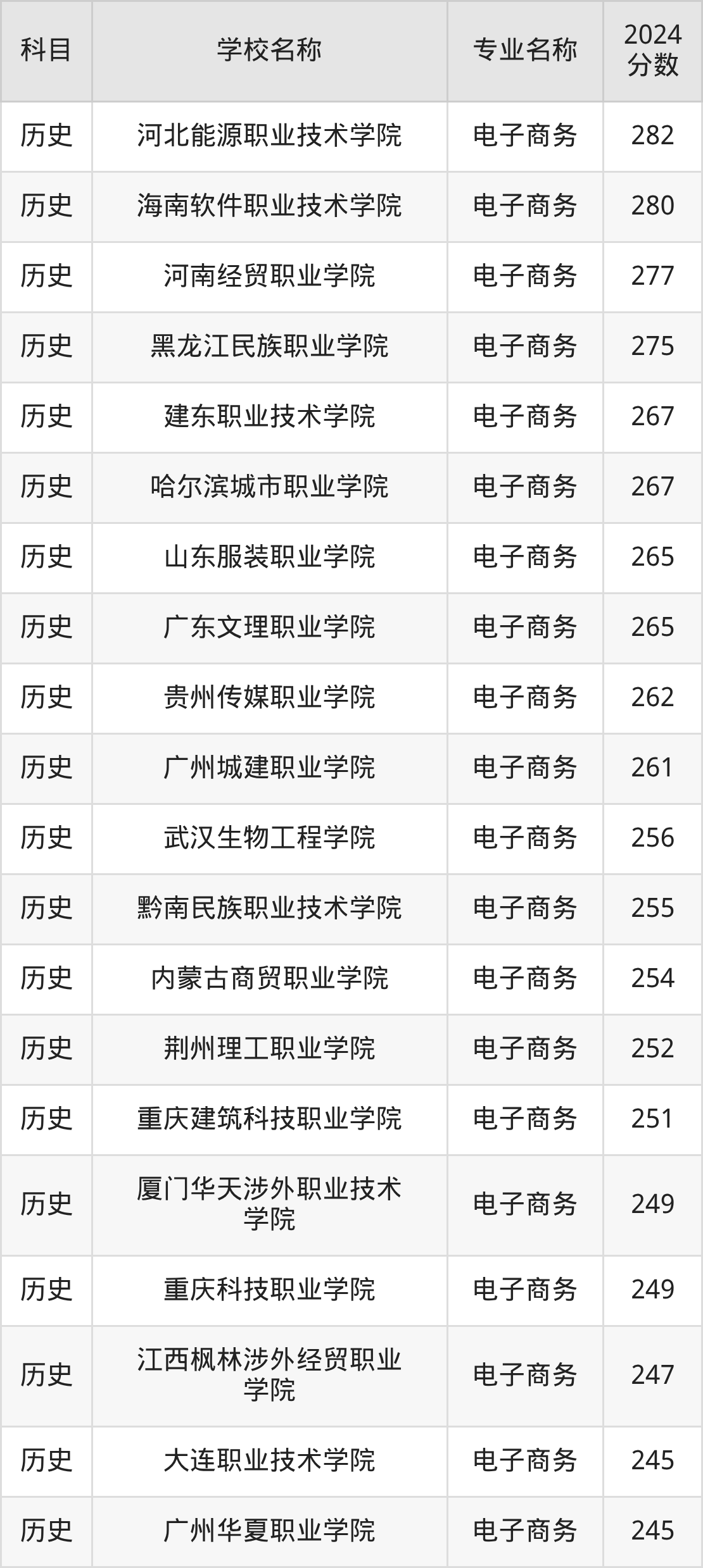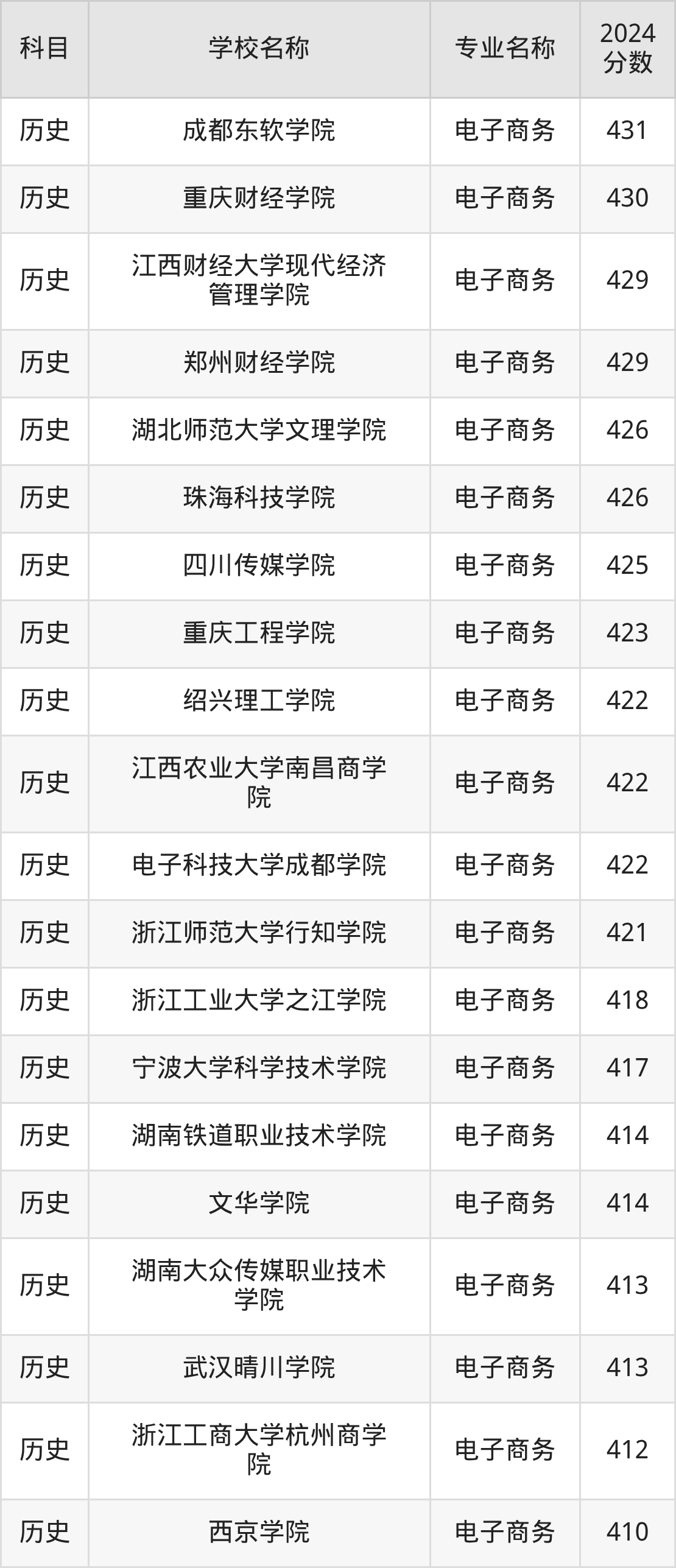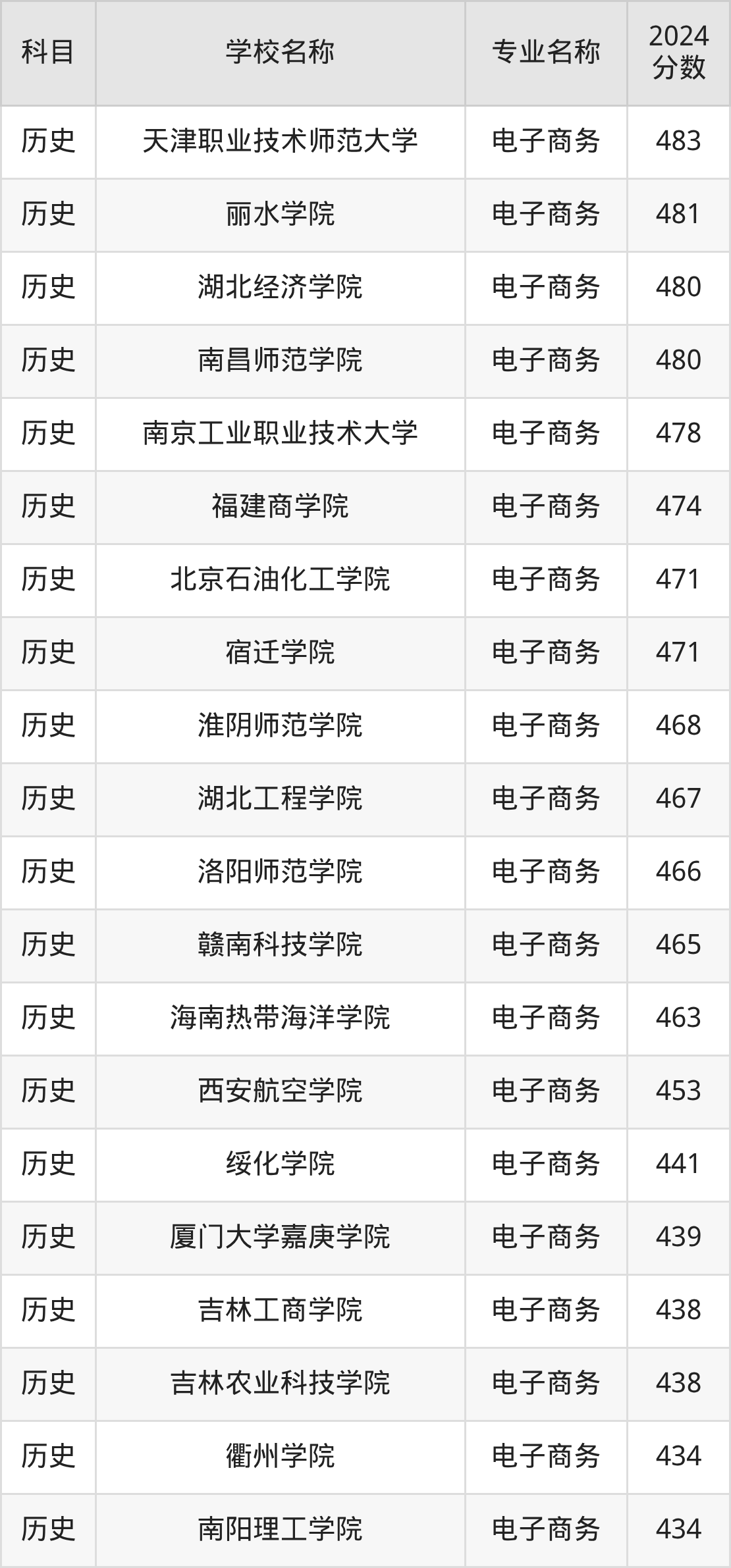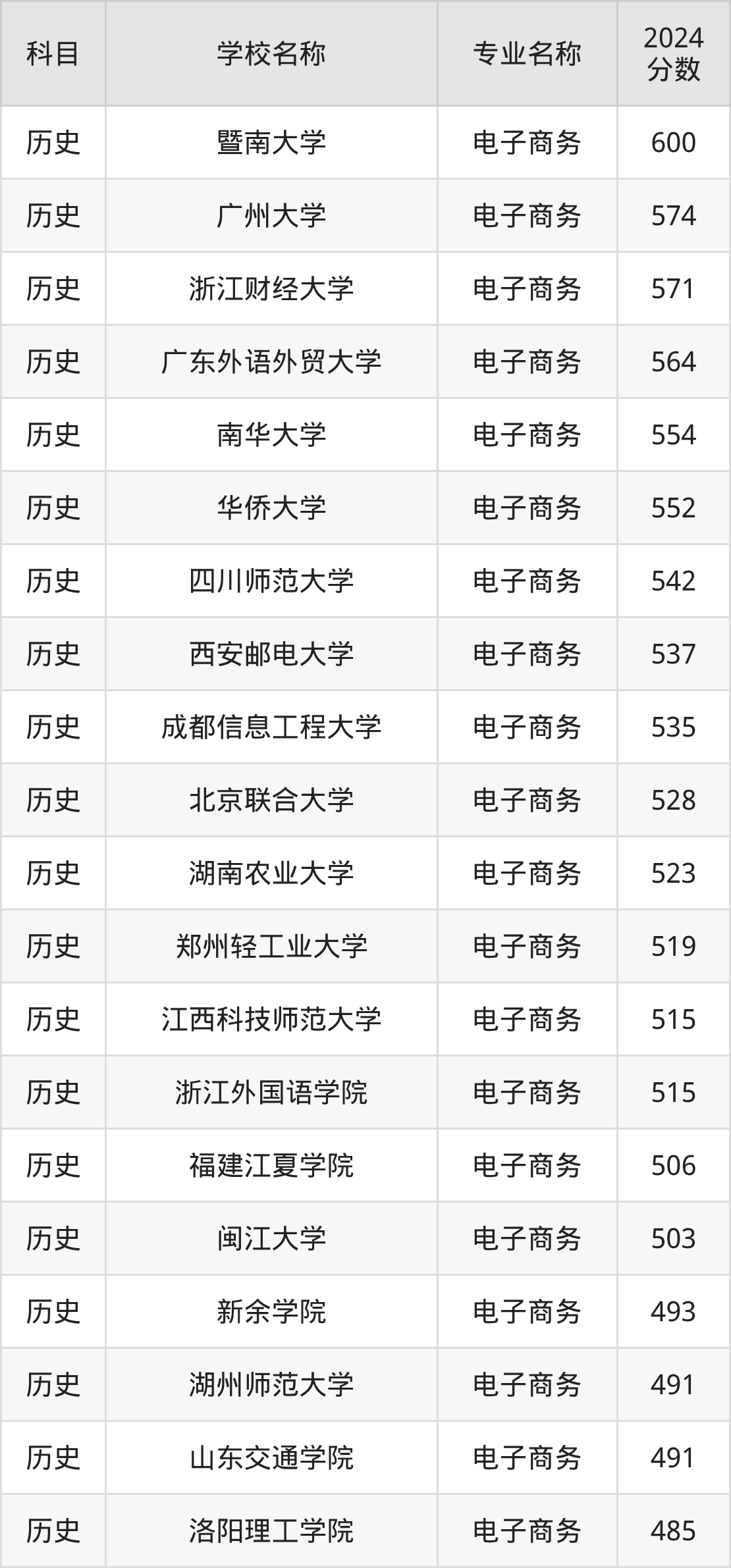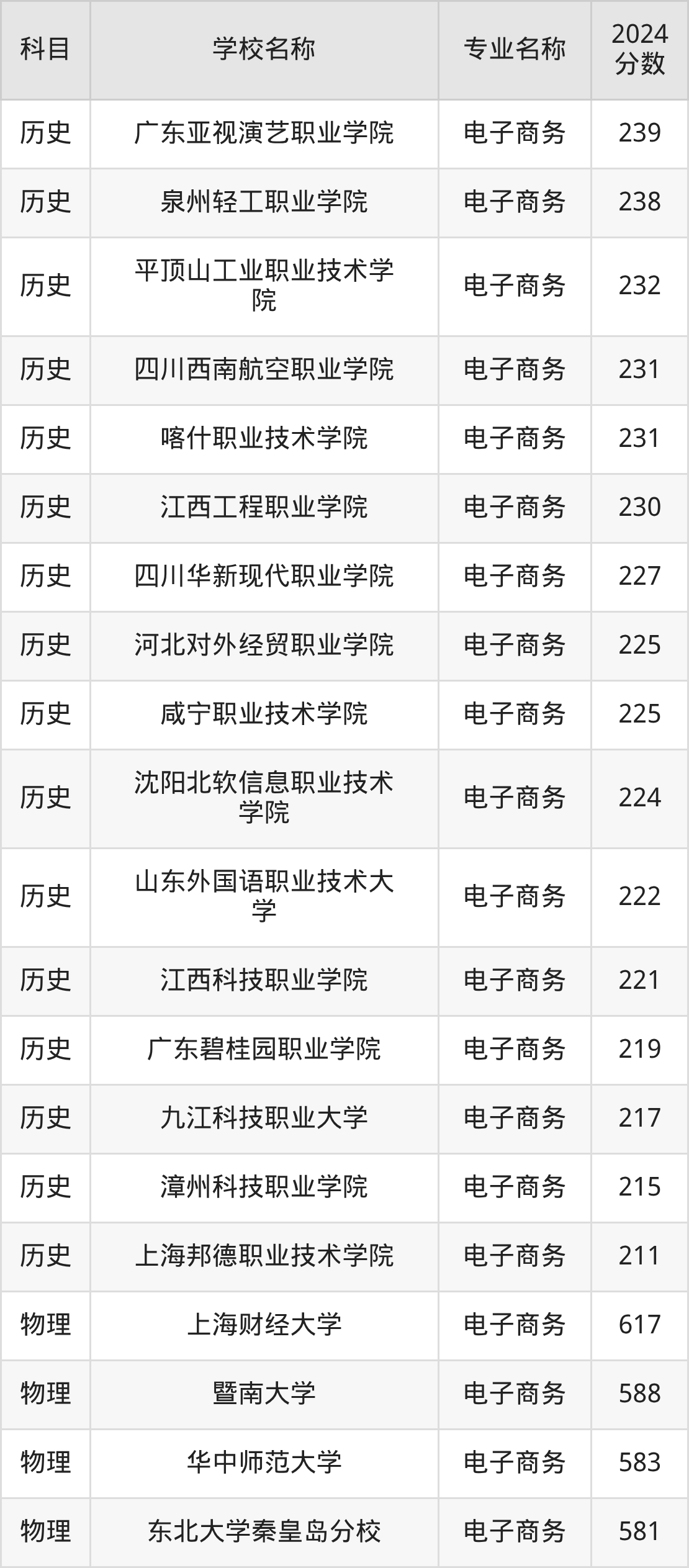 广西高考历史组:电子商务专业的最低分是200分~536分