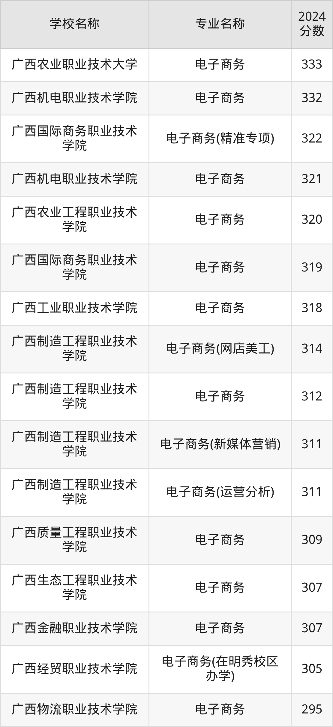 | 广西质量工程职业技术 学院 | 电子商务 | 324 |