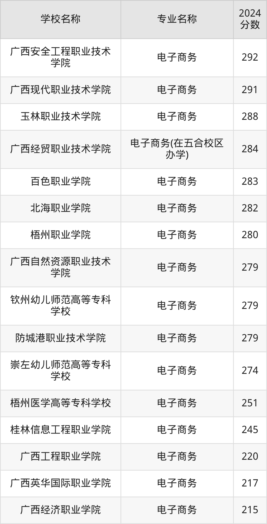 | 广西制造工程职业技术 学院 | 电子商务 | 292 |