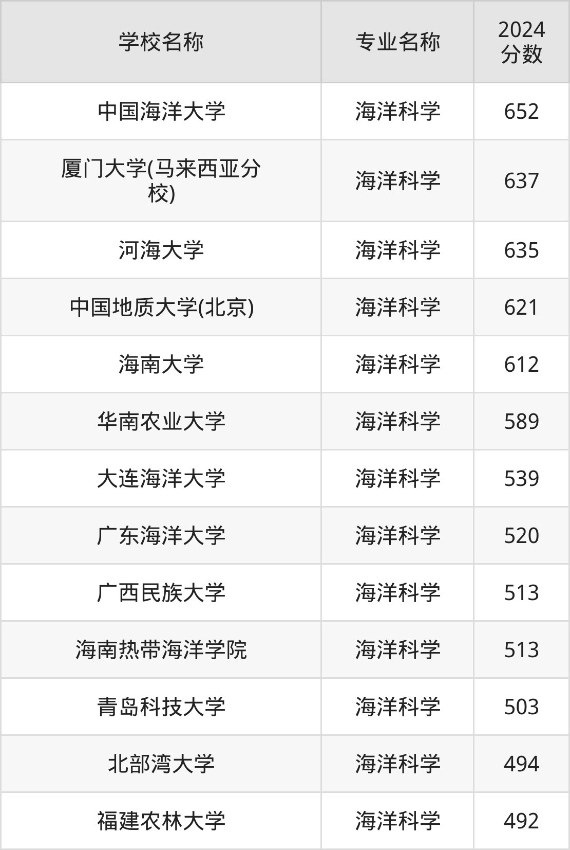 | 浙江海洋大学 | 海洋科学(第一 学年在定海校区) | 558 |