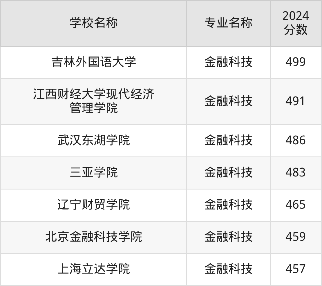 | 天津财经大学珠江学院 | 金融科技 | 488 |