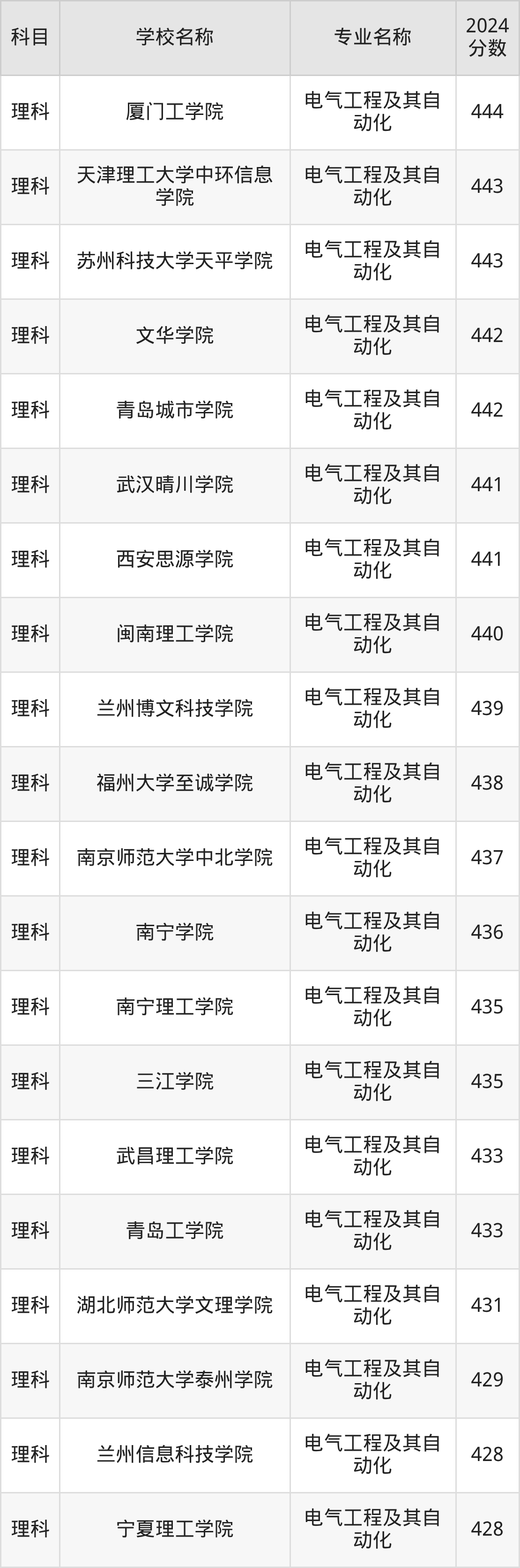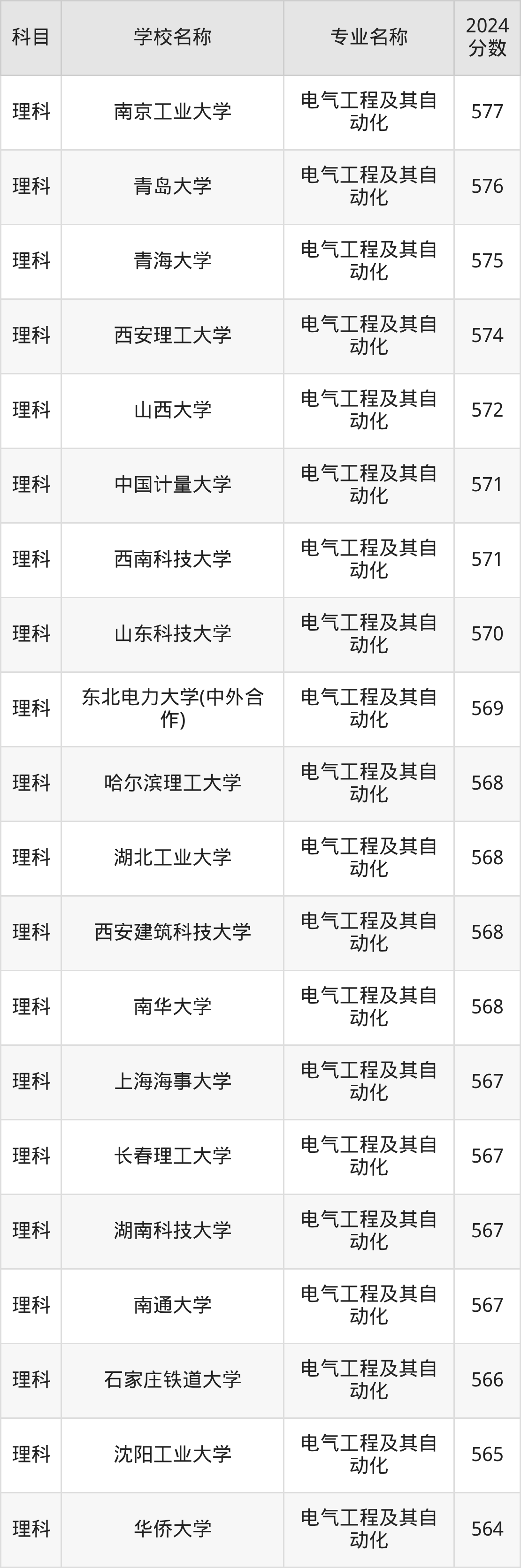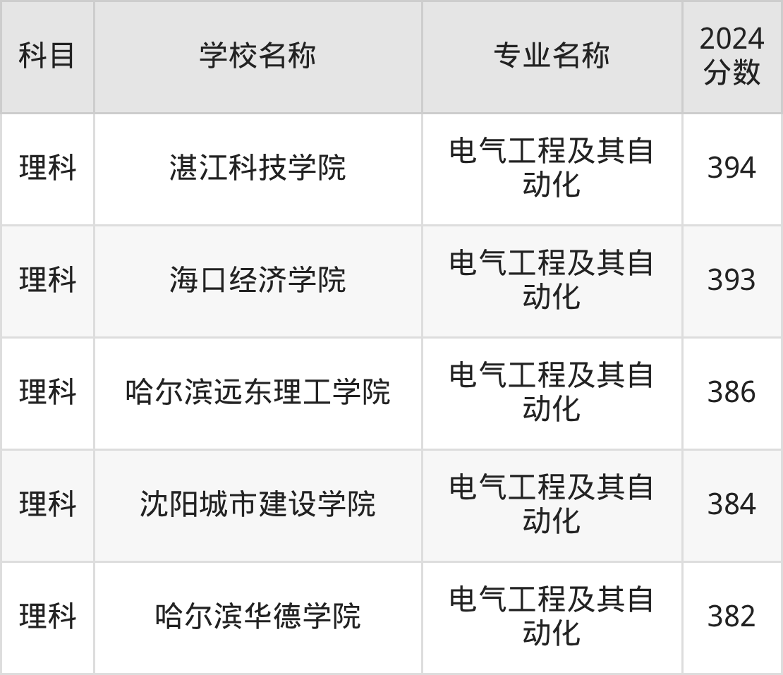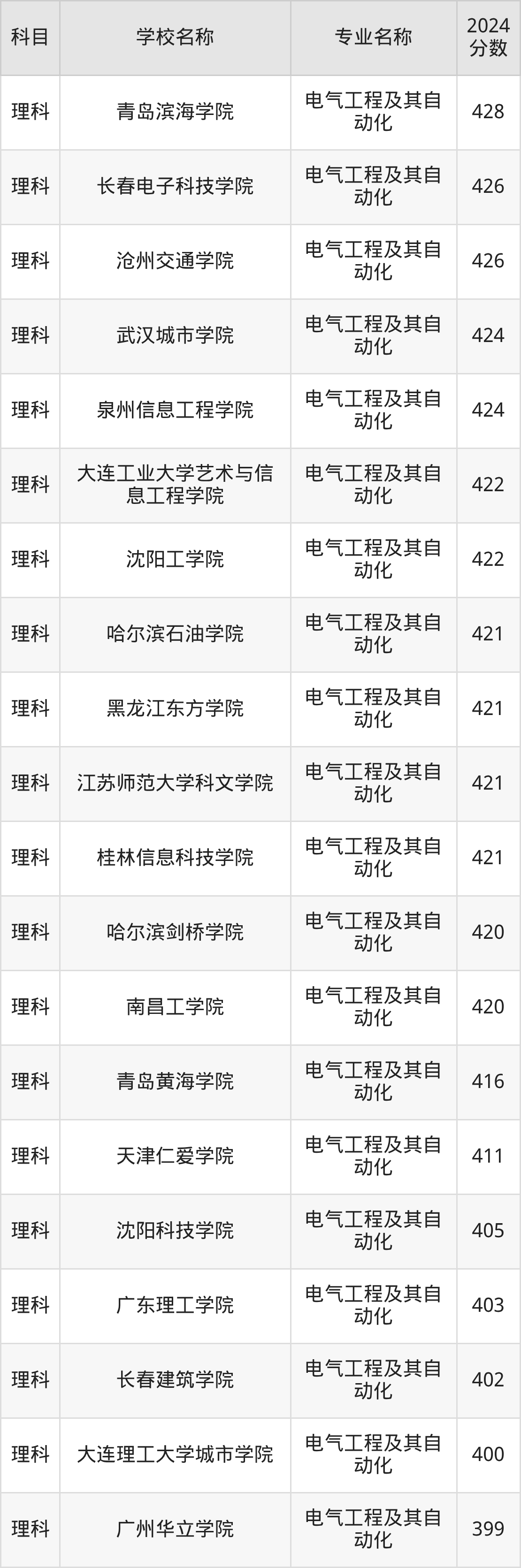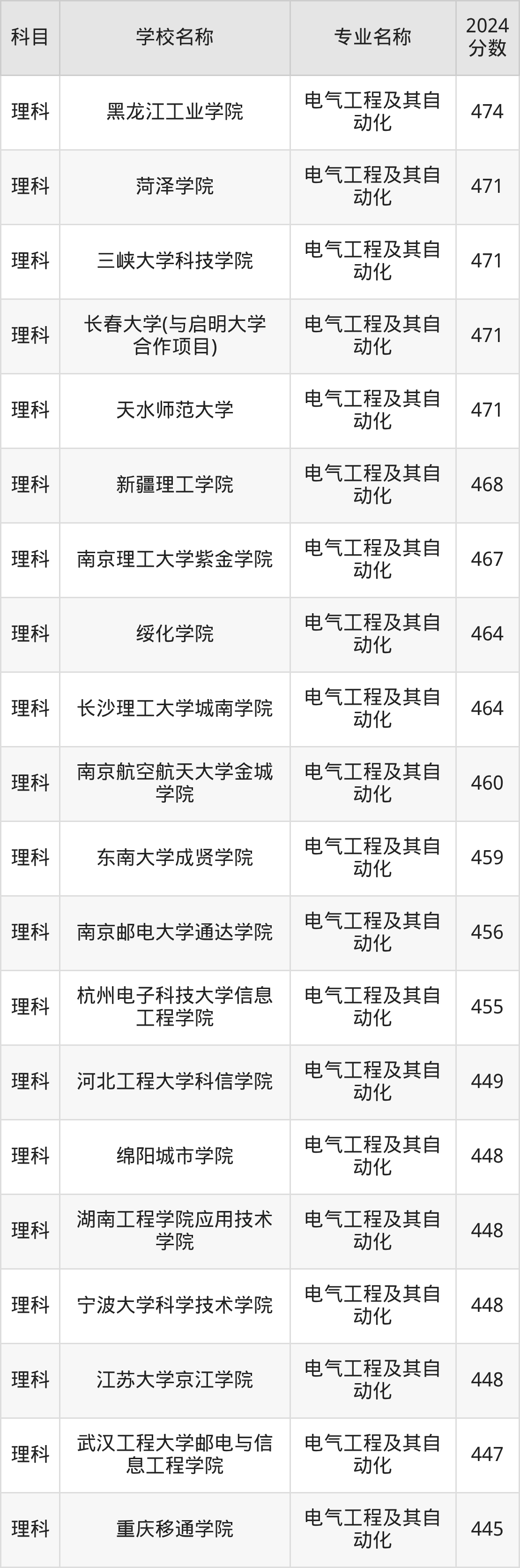 | 昆明理工大学津桥学院 | 电气工程及其自 动化 | 448 |