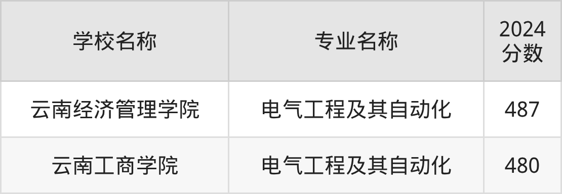 | 云南经济管理学院 | 电气工程及其自 动化 | 435 |