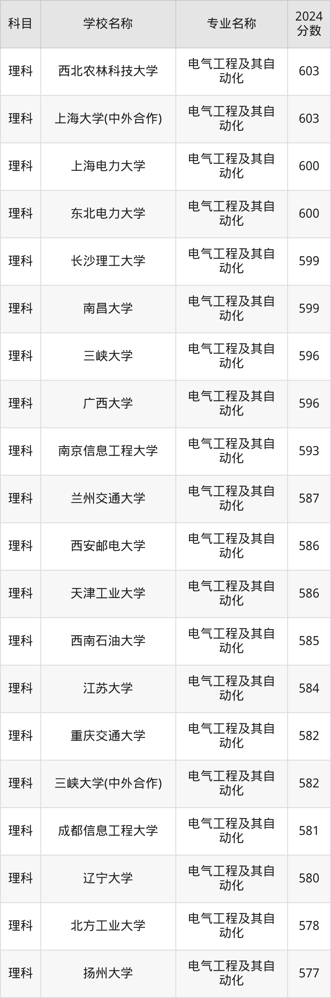 | 昆明理工大学 | 电气工程及其自 动化 | 589 |