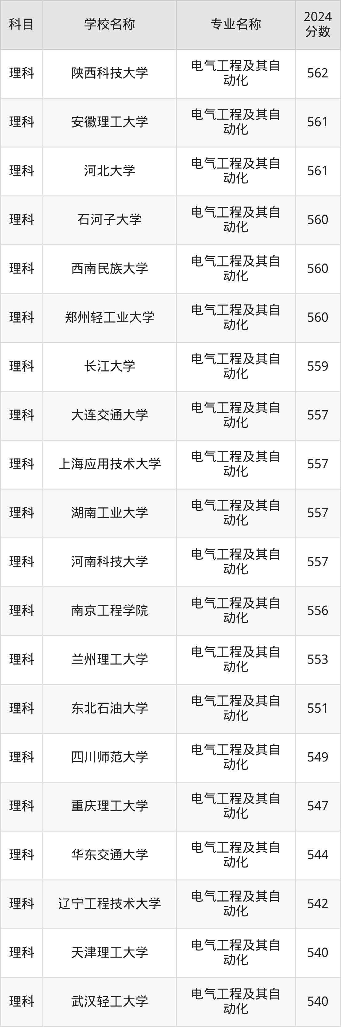 | 云南民族大学 | 电气工程及其自 动化 | 539 |