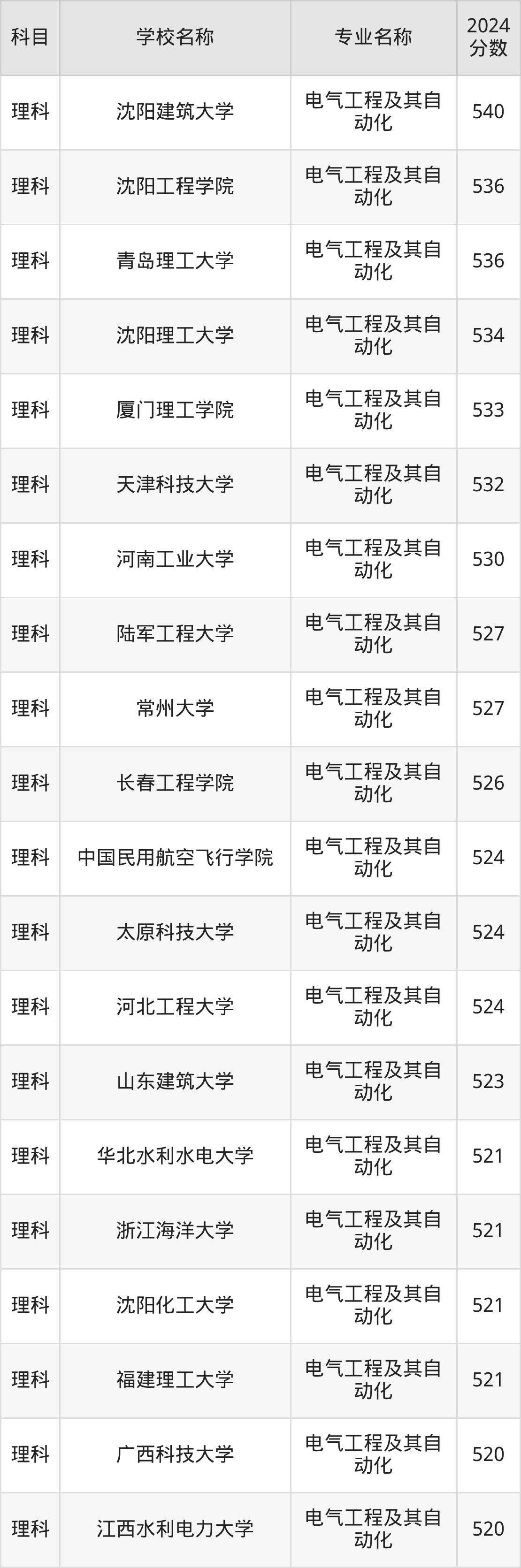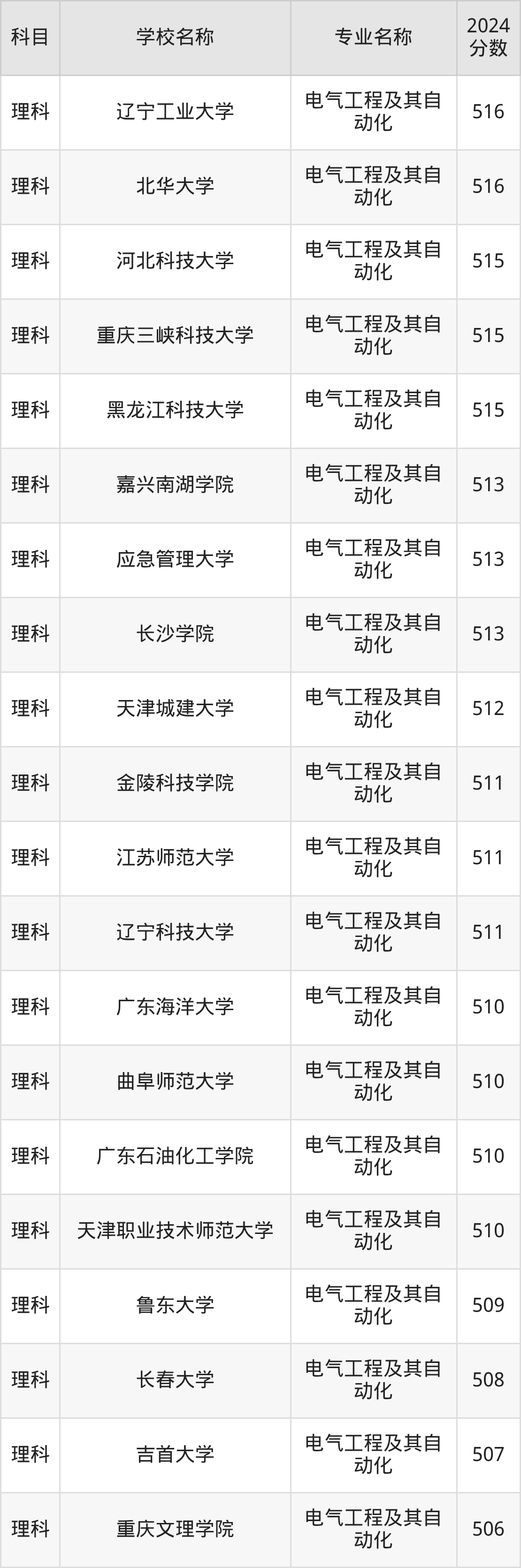 | 昆明理工大学(高等职 业教育普通本科) | 电气工程及其自 动化 | 521 |