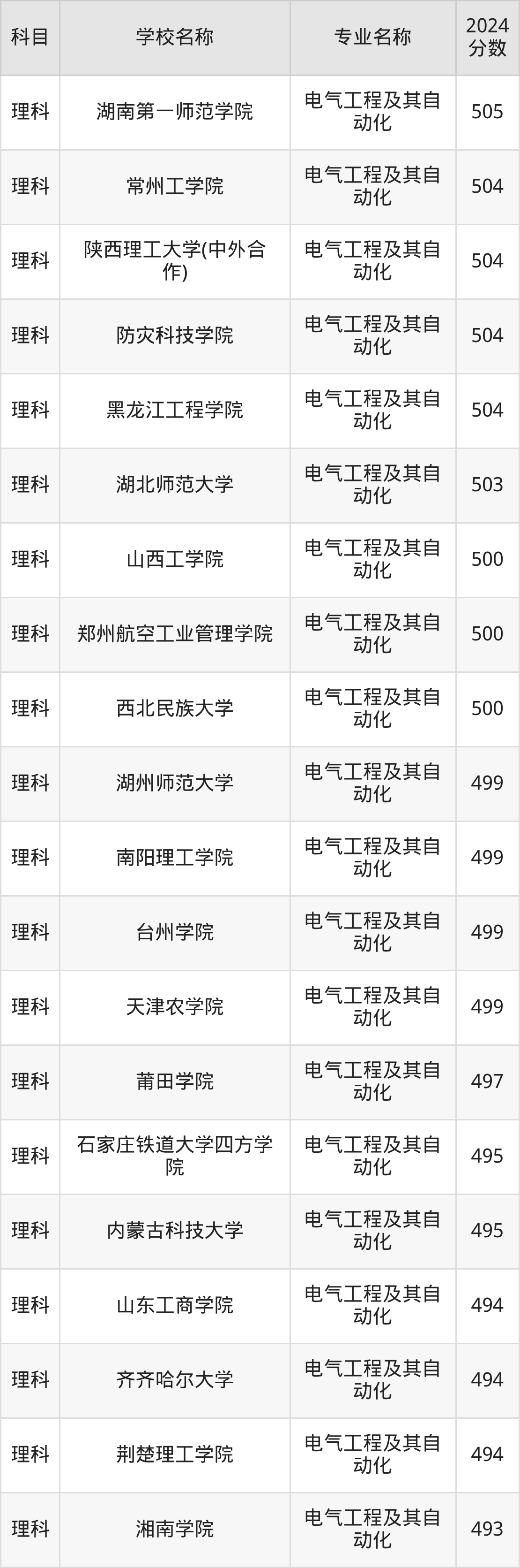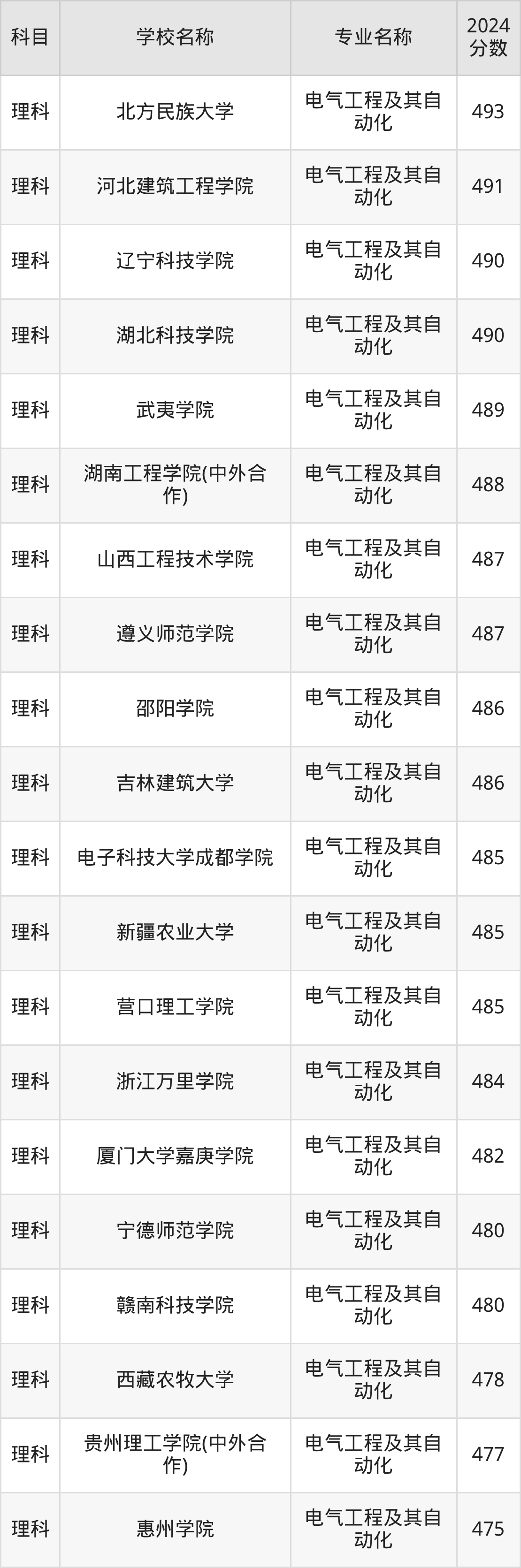 | 红河学院 | 电气工程及其自 动化 | 479 |