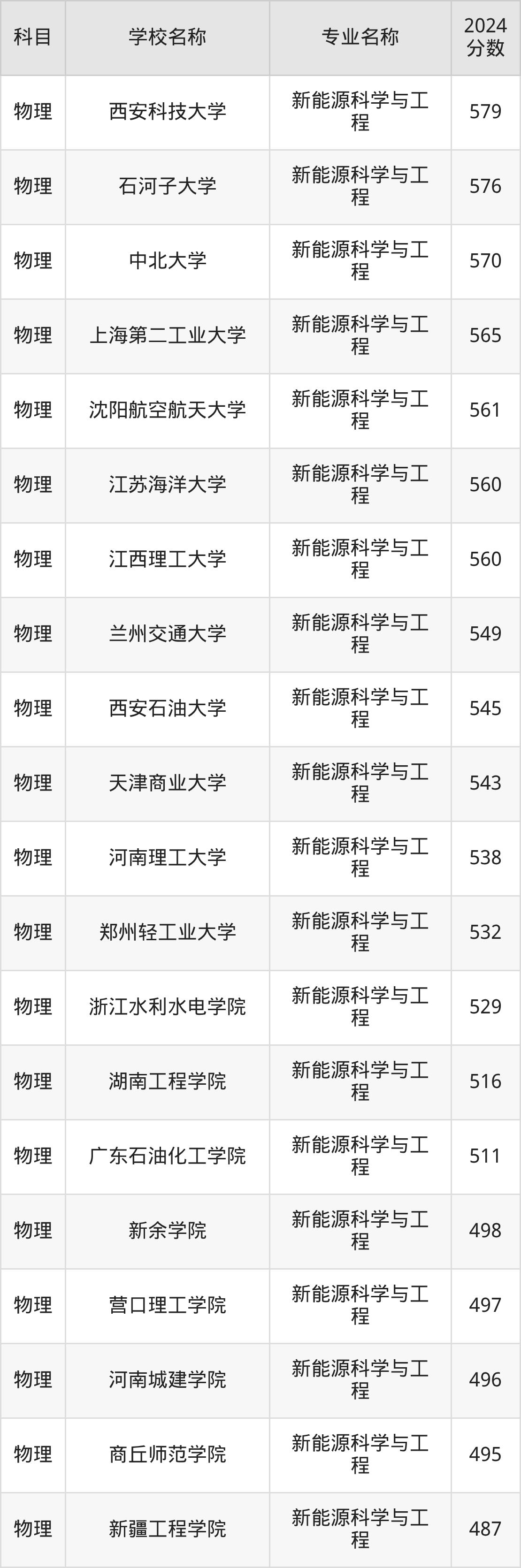 下文将为大家展示安徽省大学新能源科学与工程专业2024年在安徽高考的最低录取分数线!
