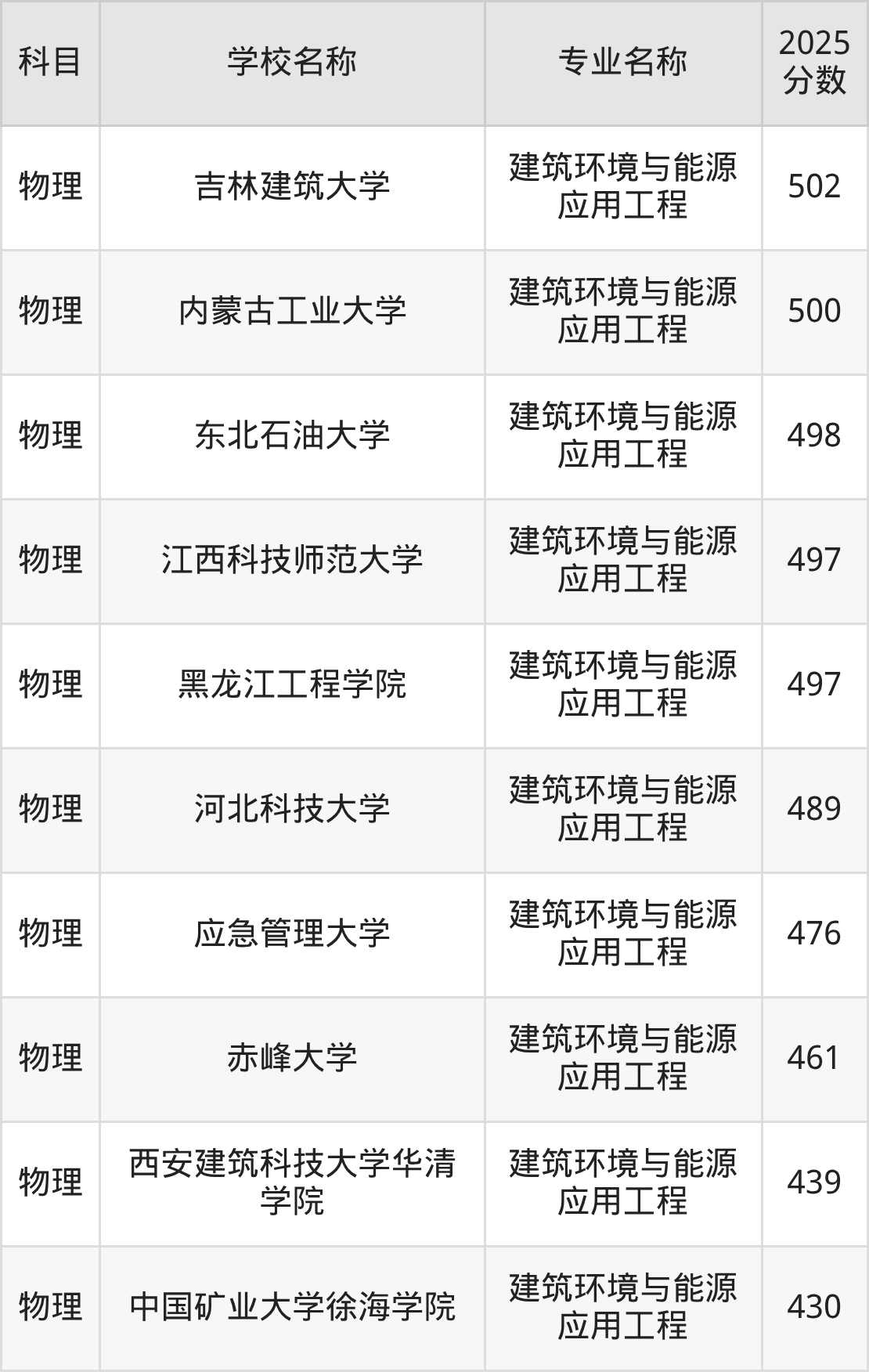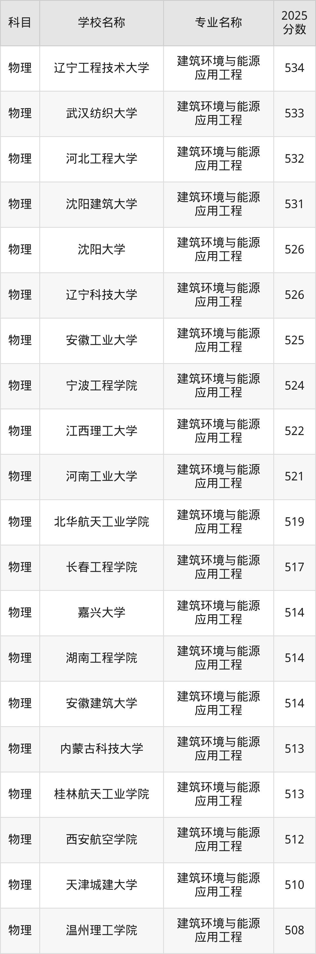 下文将为大家展示山西省大学建筑环境与能源应用工程专业2025年在山西高考的最低录取分数线!