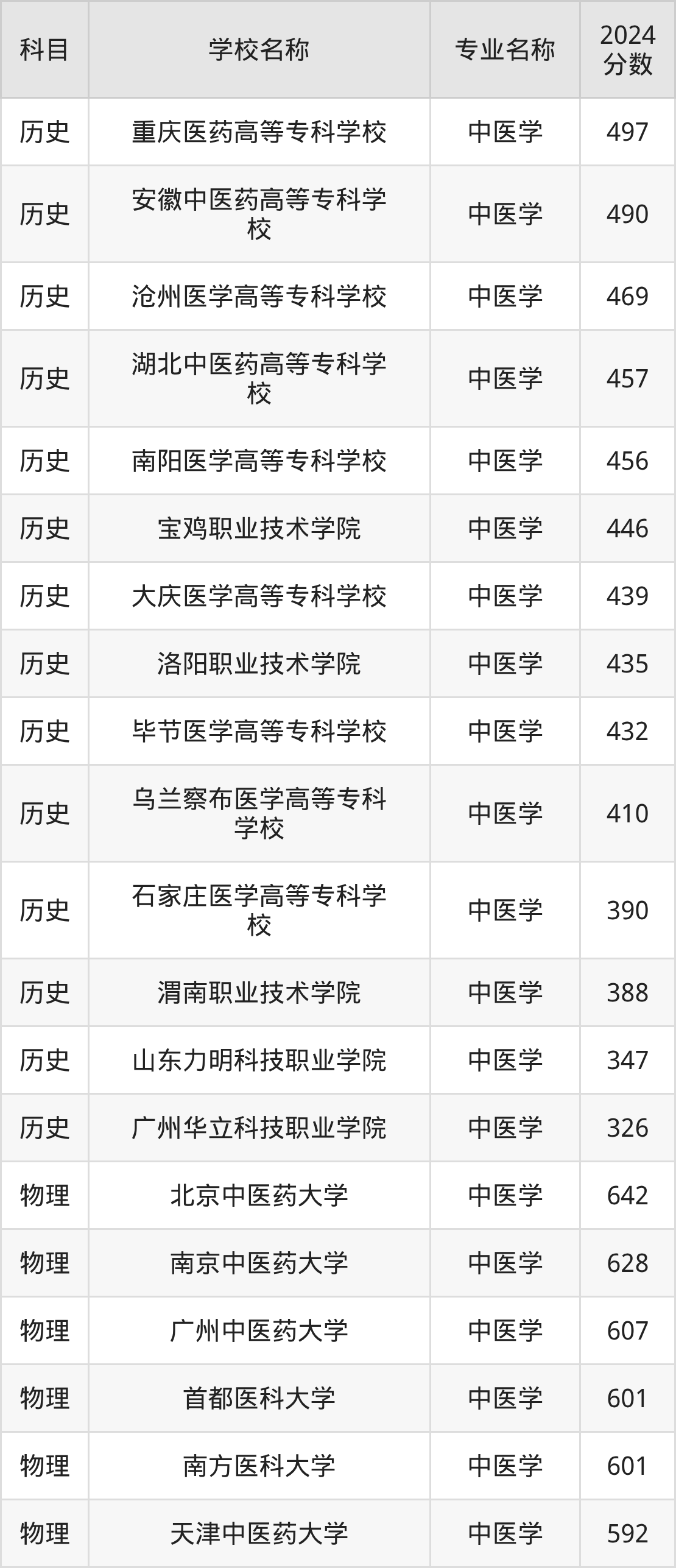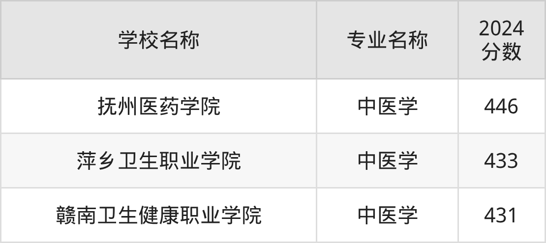 | 赣南卫生健康职业学院 | 中医学 | 402 |