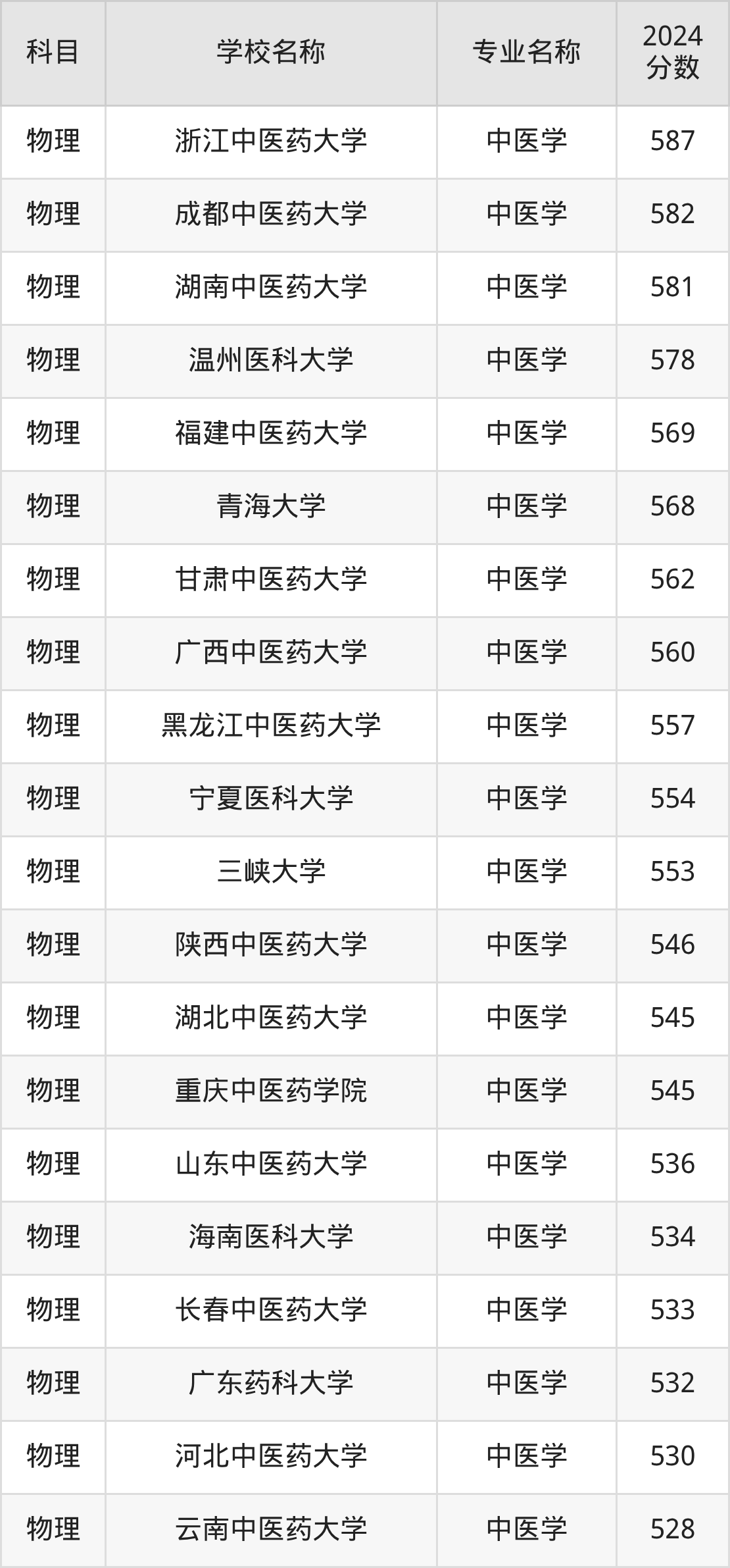| 江西中医药大学 | 中医学 | 540 |