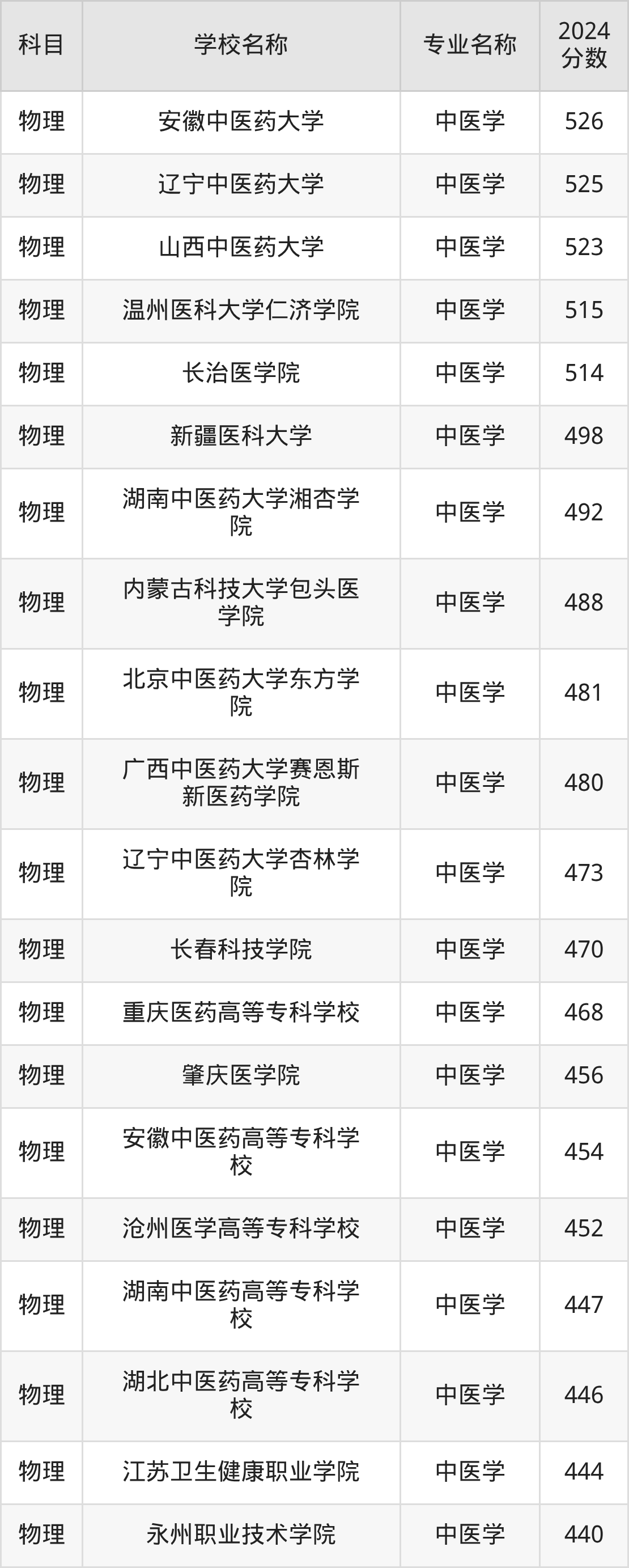 | 井冈山大学 | 中医学 | 508 |