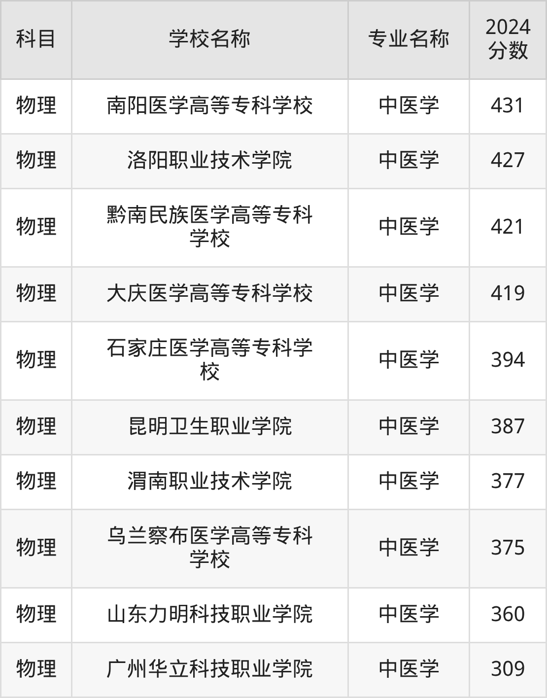 | 萍乡卫生职业学院 | 中医学 | 400 |