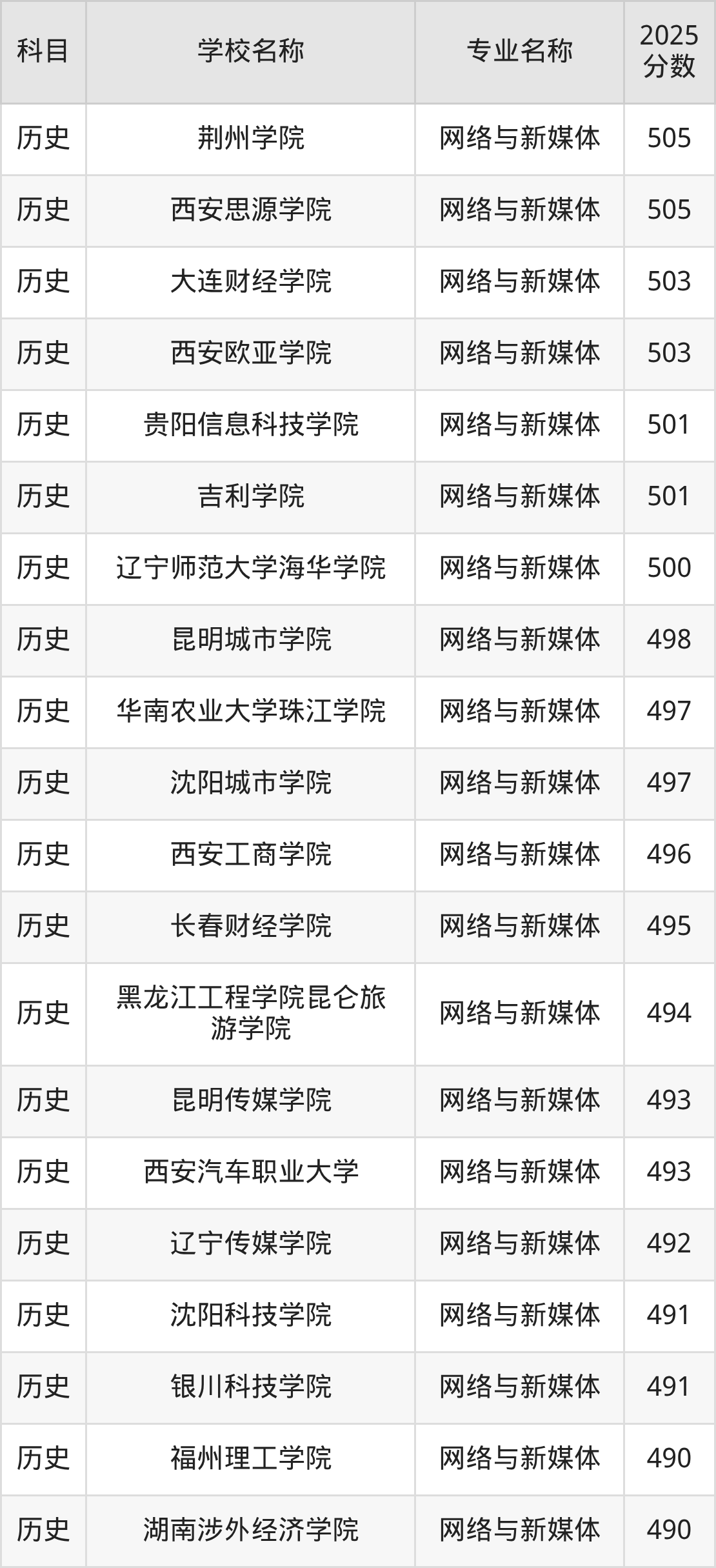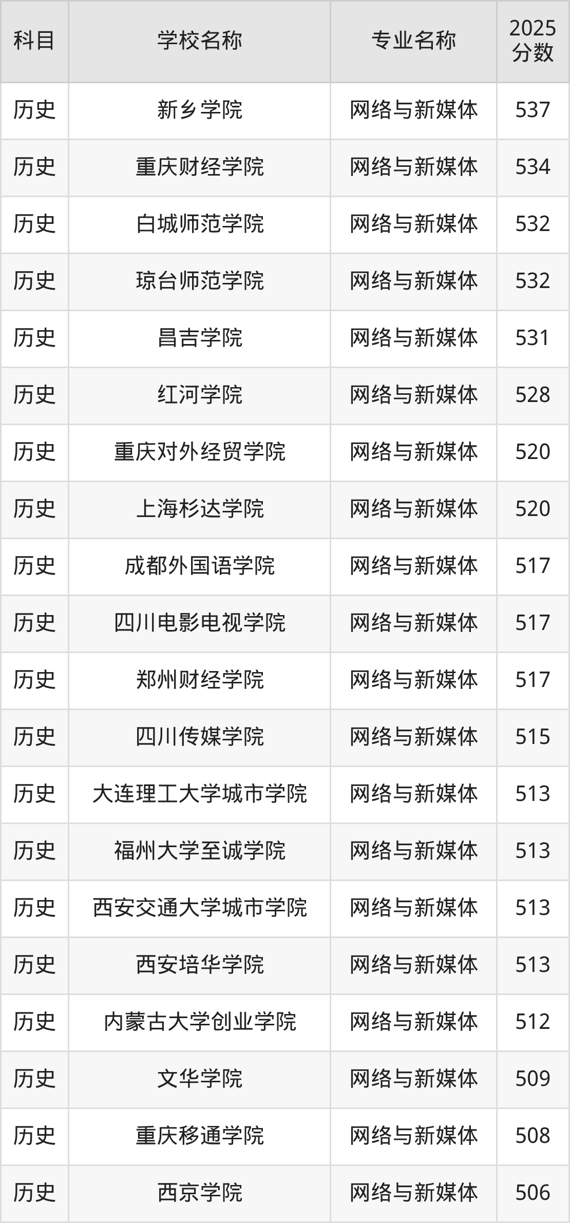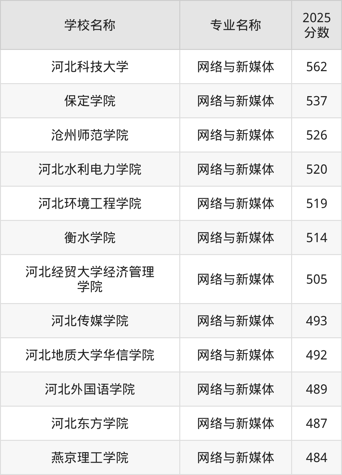 | 河北传媒学院 | 网络与新媒体 | 504 |