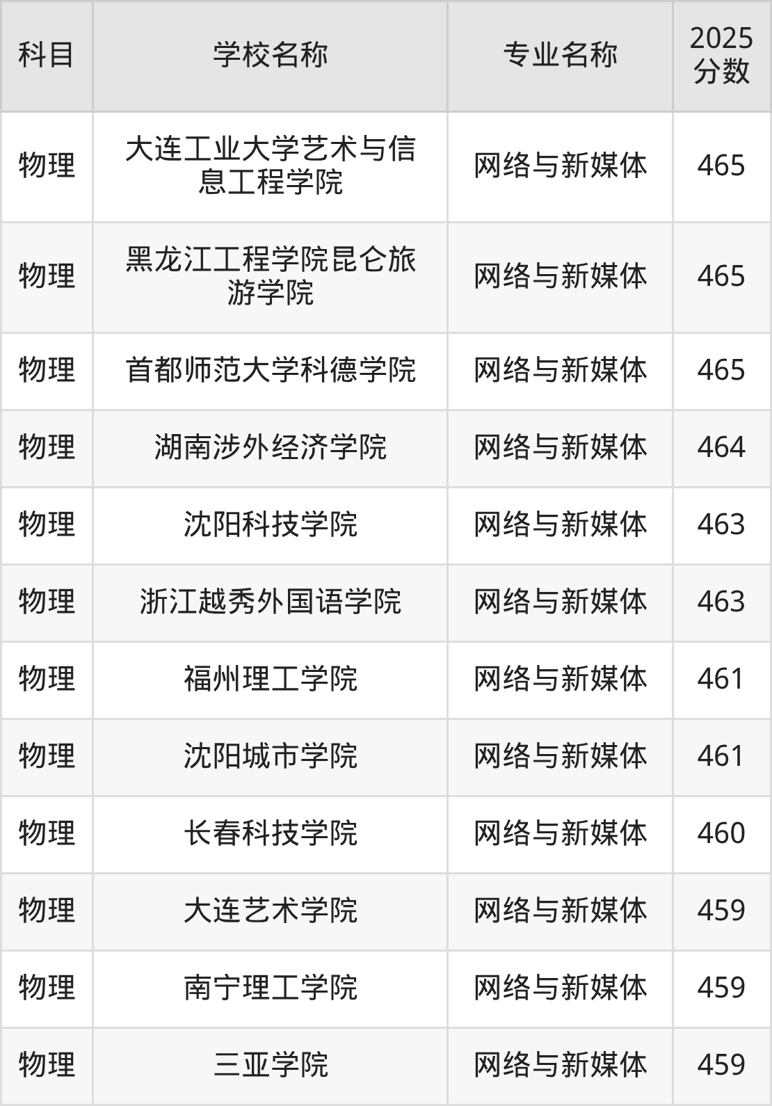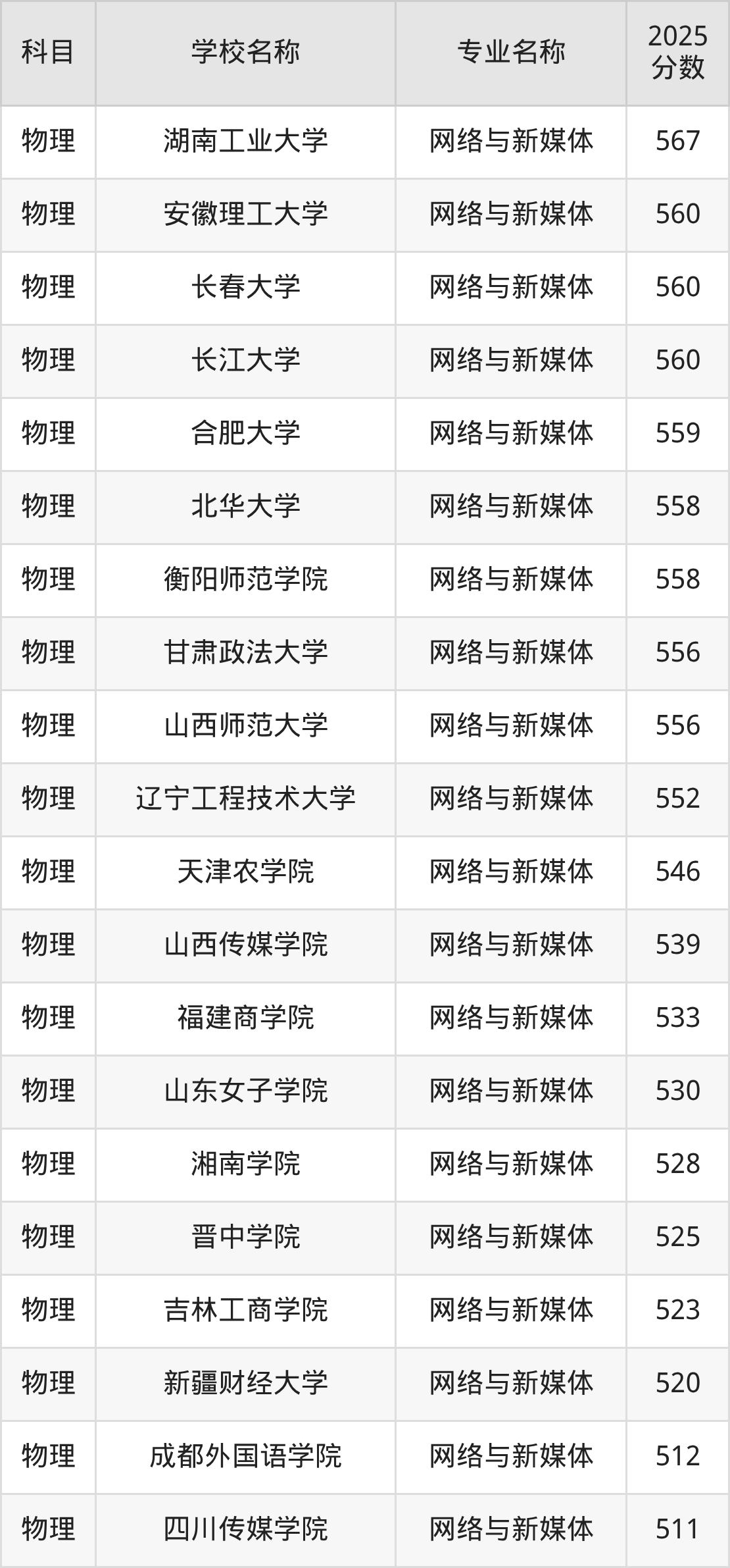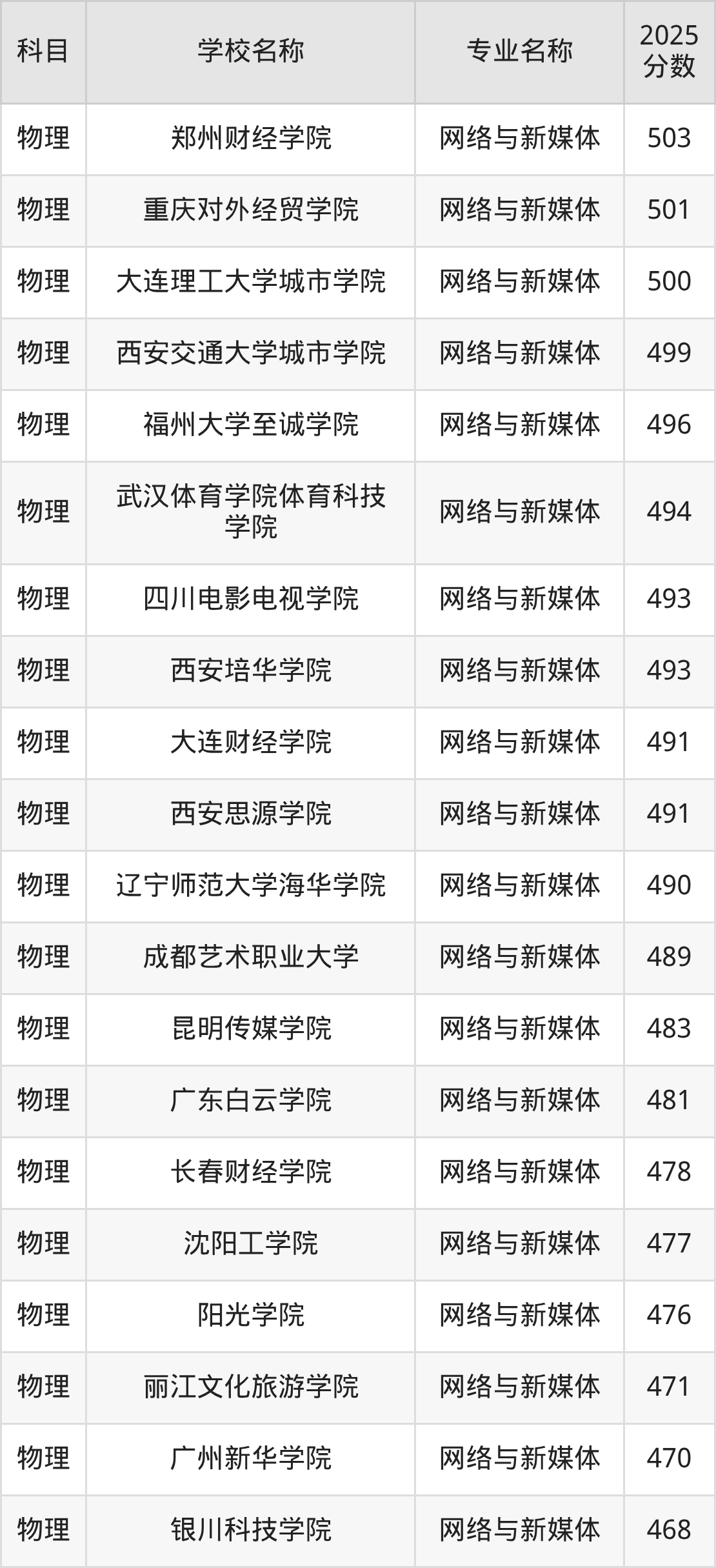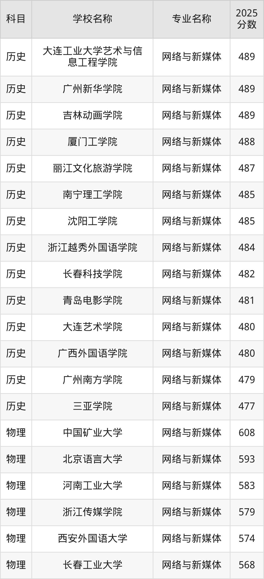 | 河北传媒学院 | 网络与新媒体 | 504 |