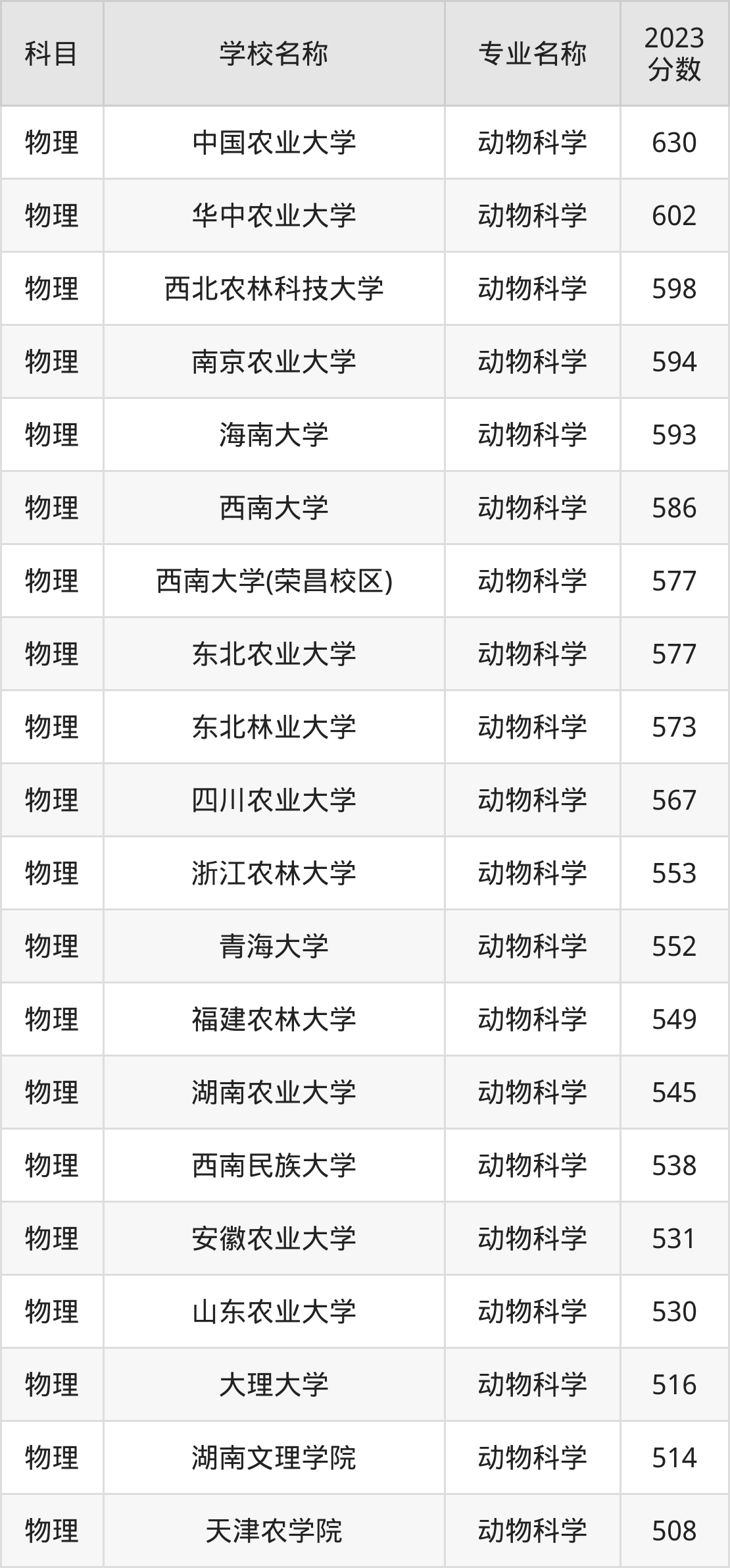 在直接以“动物科学”的名称招生的广东省大学中,华南农业大学的分数线最高、排名第一名,在物理组的最低分是598分,全省排名前28644位的高考生才有较大机会被录取。