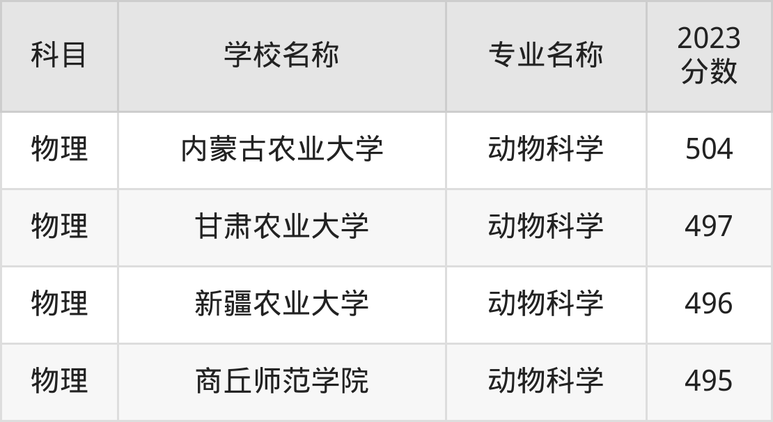 广东高考物理组:动物科学专业的最低分是495分~598分