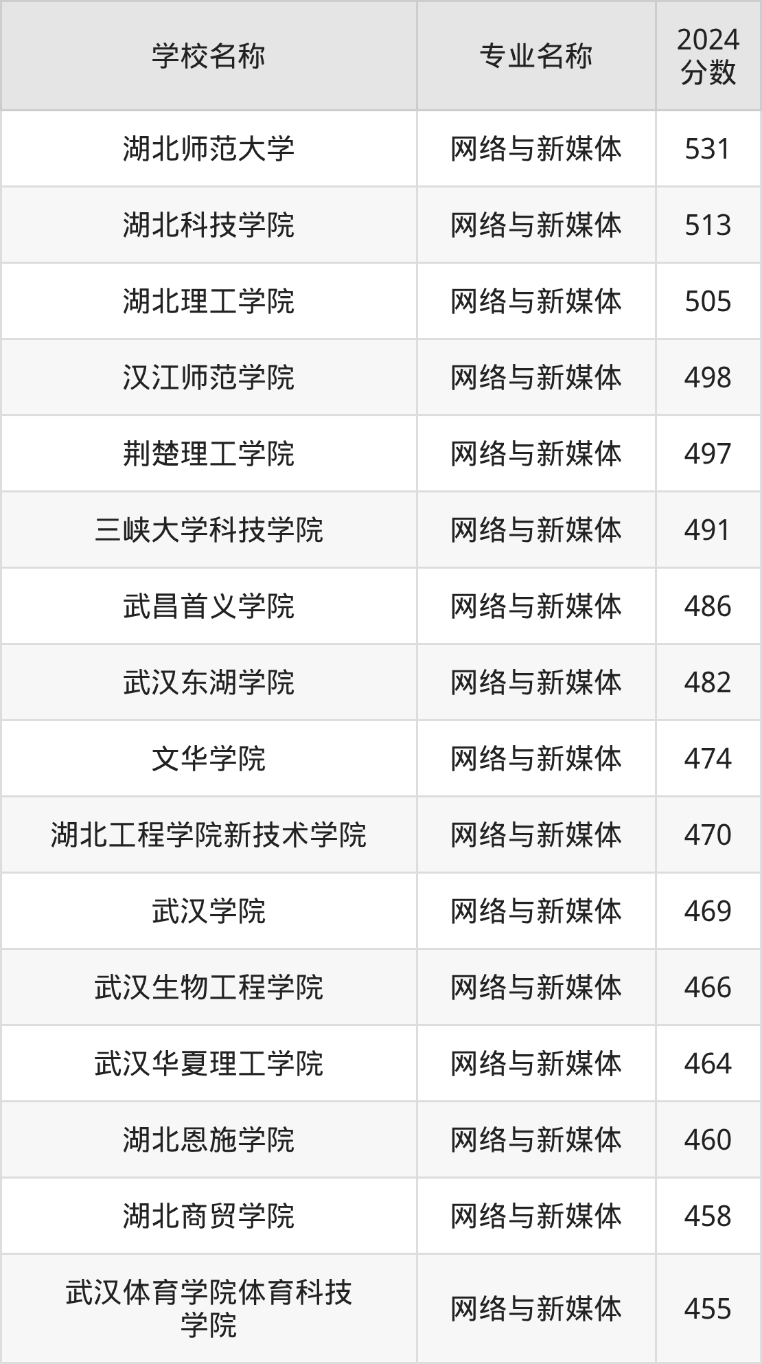 | 湖北科技学院 | 网络与新媒体 | 499 |