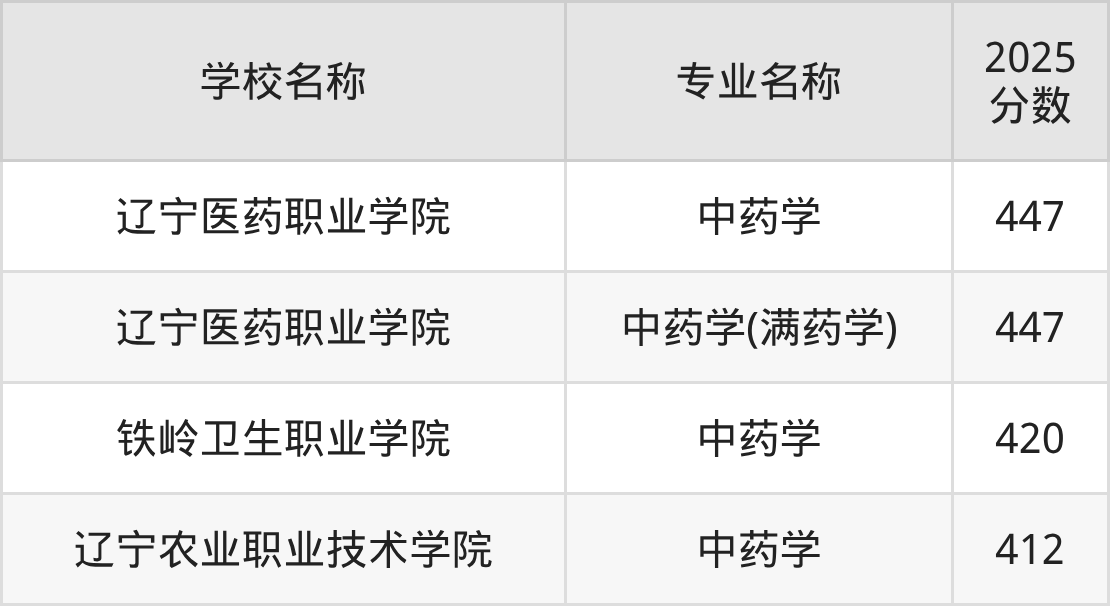 | 辽宁医药职业学院 | 中药学 | 447 |