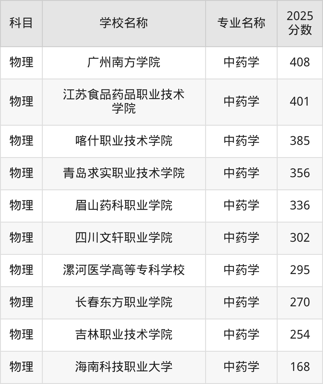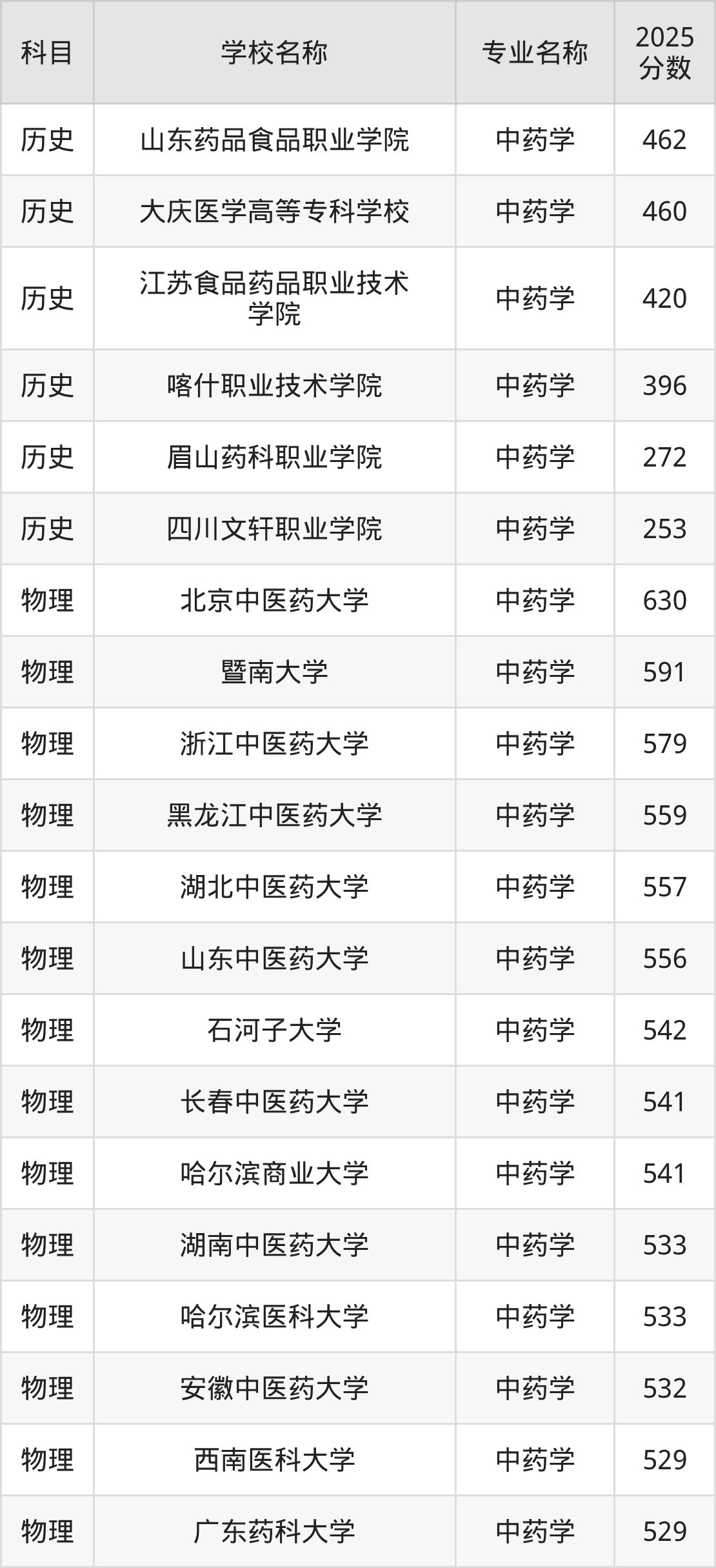 | 学校名称 | 专业名称 | 2025 分数 |