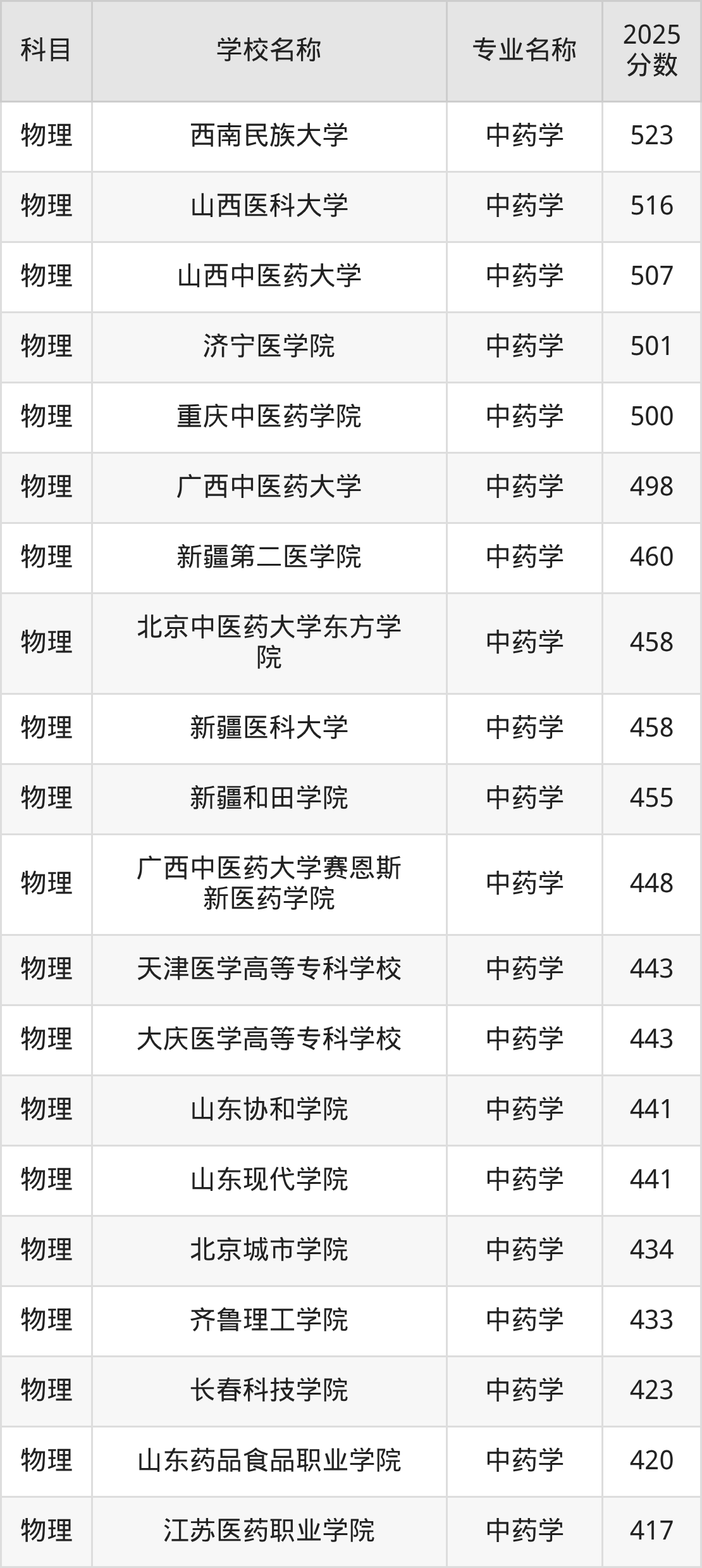 | 沈阳医学院 | 中药学 | 498 |