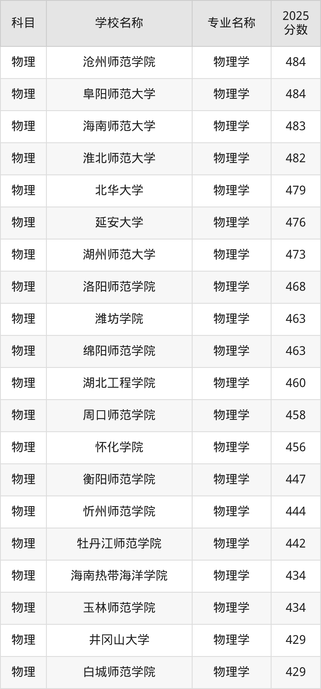 | 呼伦贝尔学院 | 物理学(师范类) | 439 |