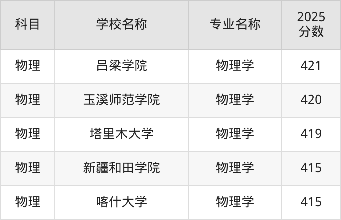 | 学校名称 | 专业名称 | 2025 分数 |