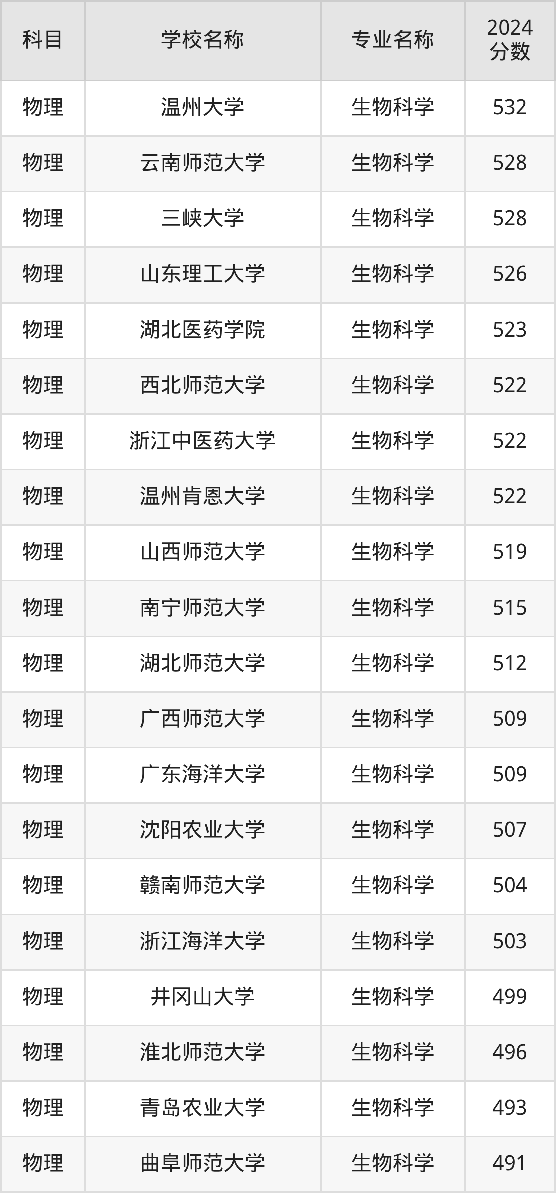 下文将为大家展示湖南省大学生物科学专业2024年在湖南高考的最低录取分数线!