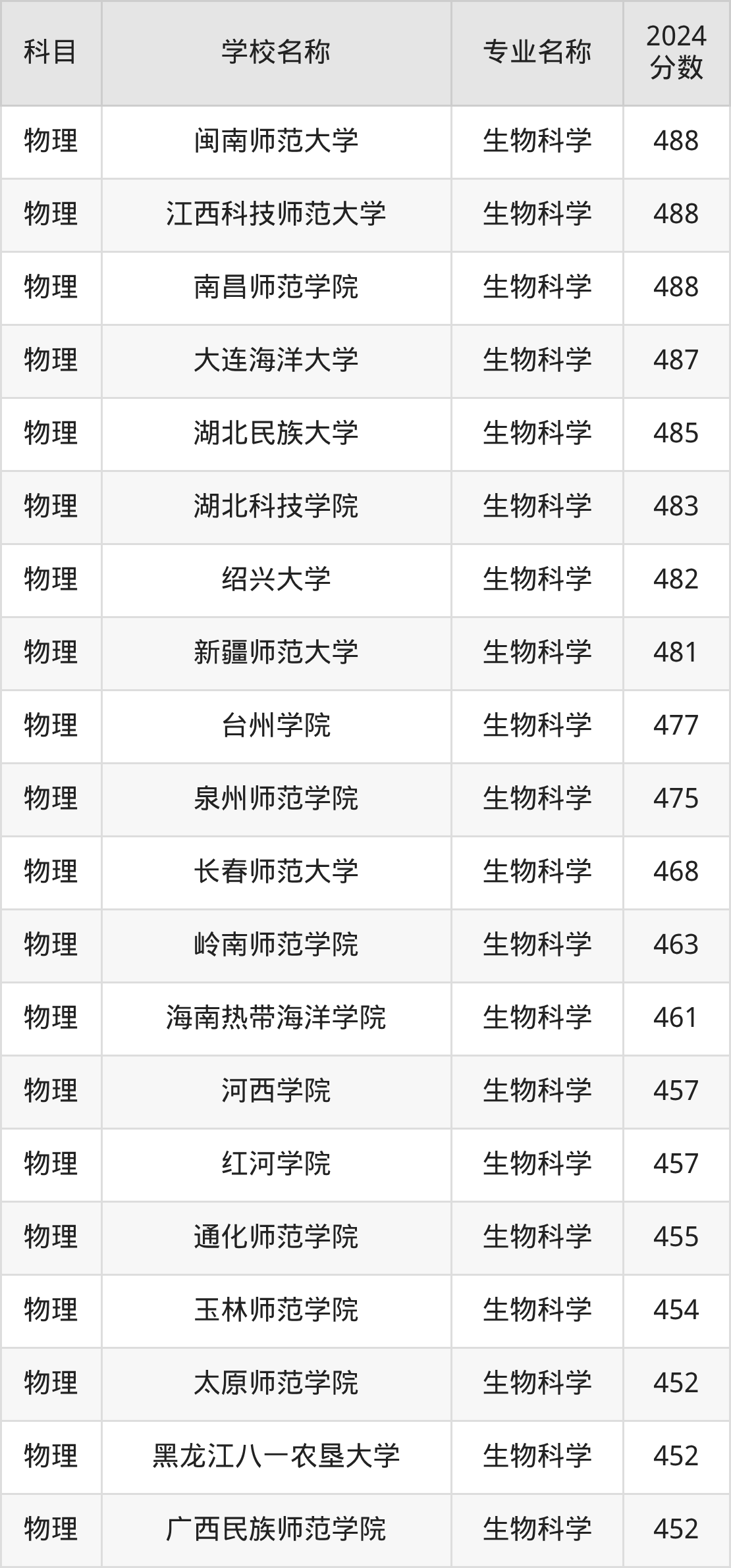 | 湖南文理学院 | 生物科学(师范) | 474 |