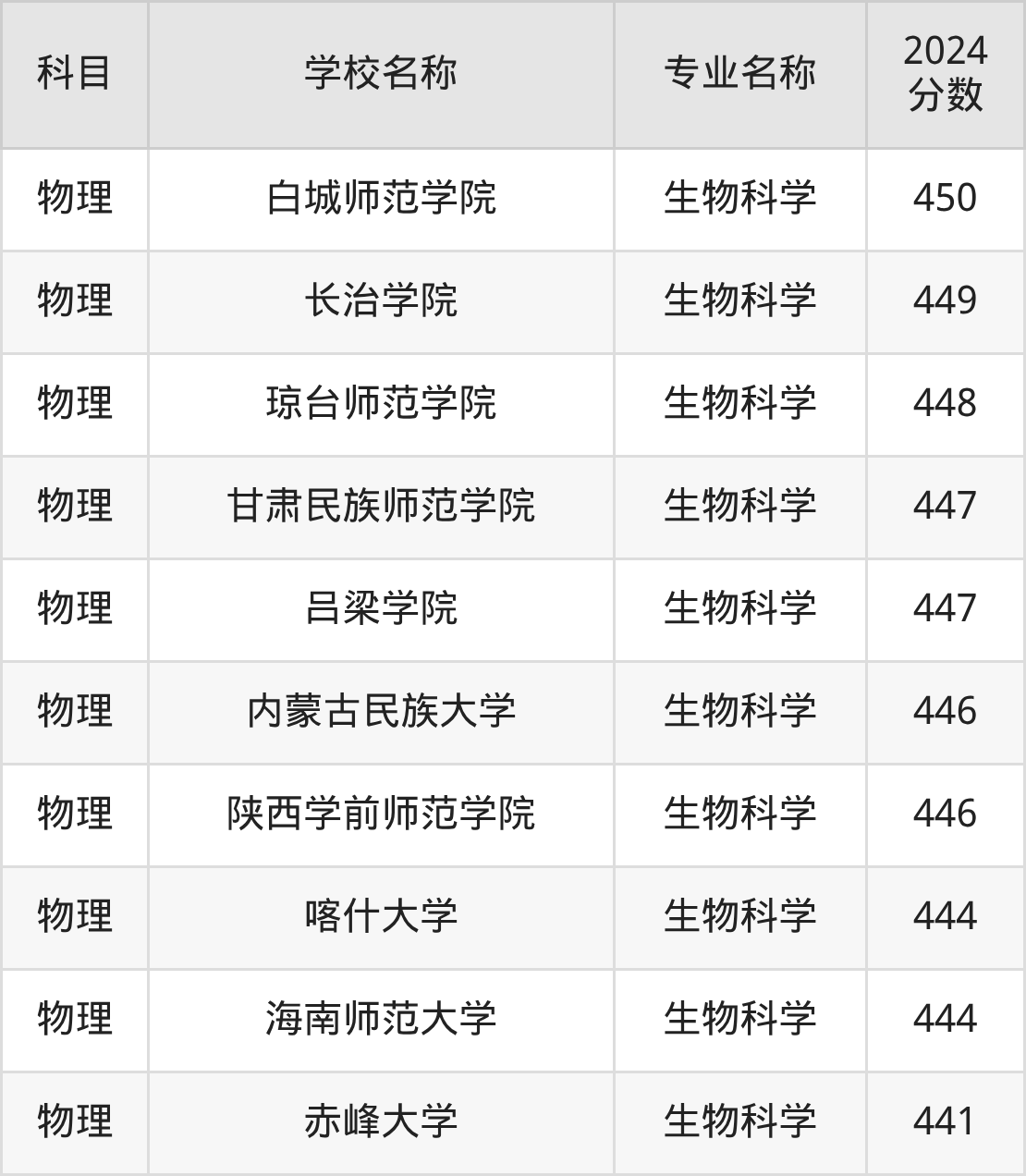 | 衡阳师范学院 | 生物科学(师范) | 470 |