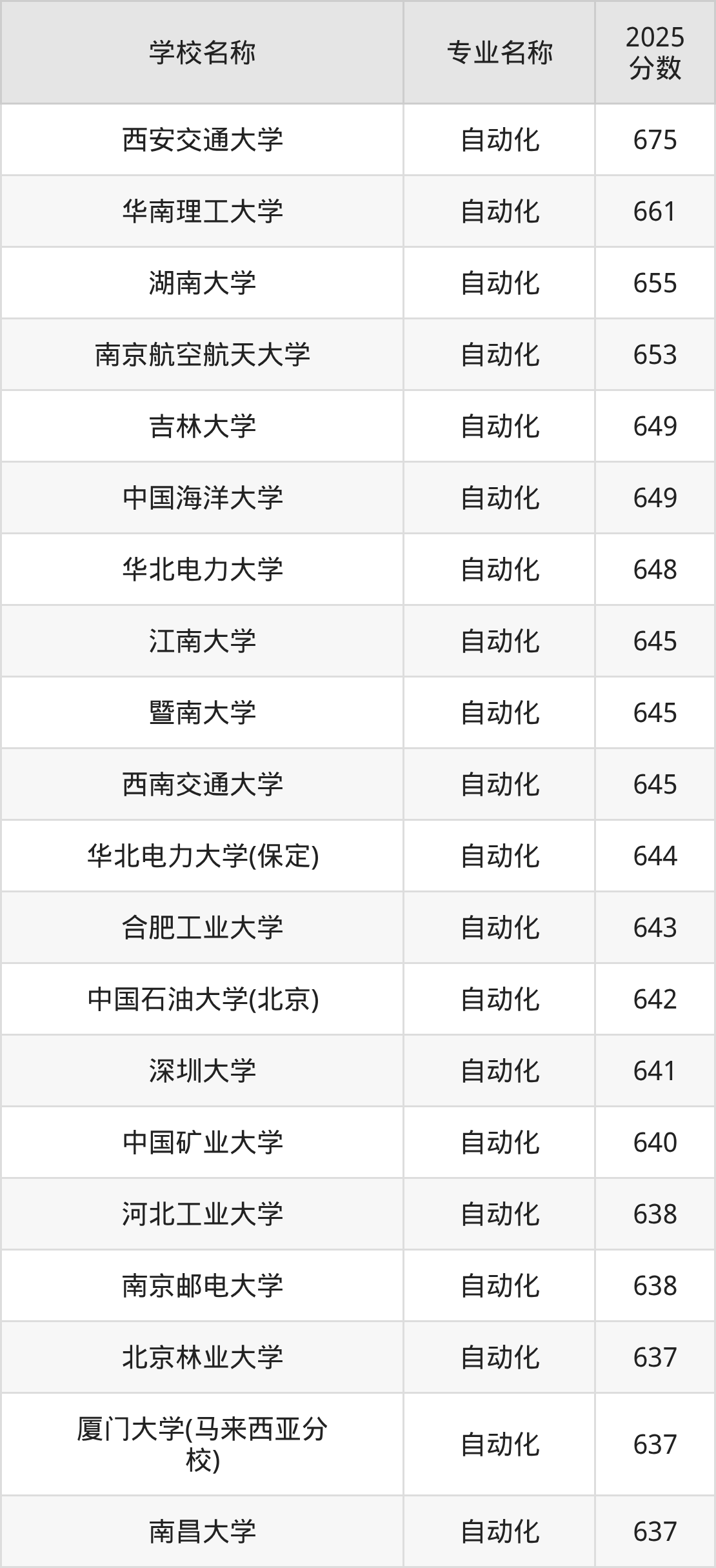 通过上文大家可以知晓,在浙江省内招自动化专业的院校数量较少,所以下文将为2026届高考生继续展示:省外大学的自动化专业2025年在浙江高考的录取情况,包含西安交通大学、华南理工大学、湖南大学、南京航空航天大学、吉林大学。