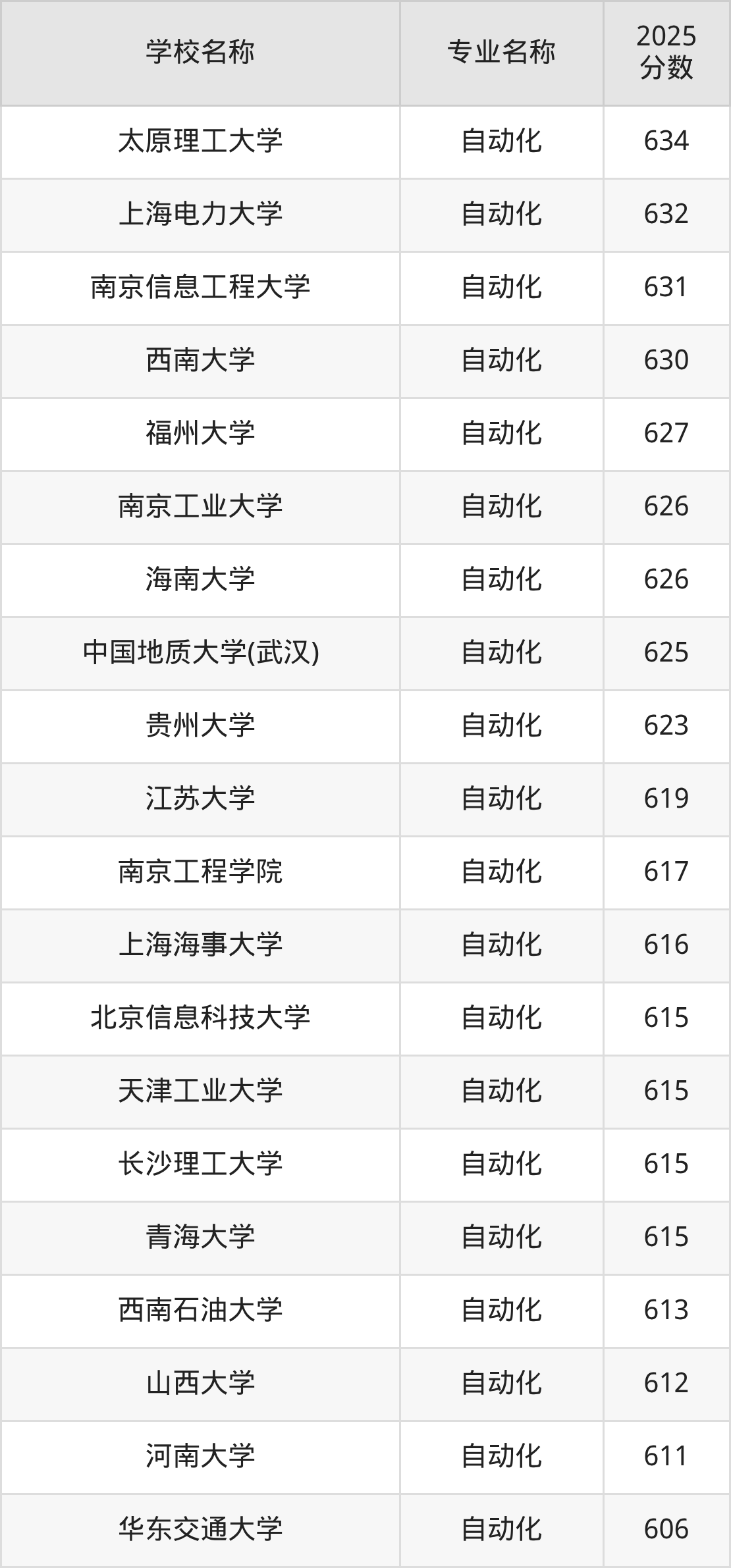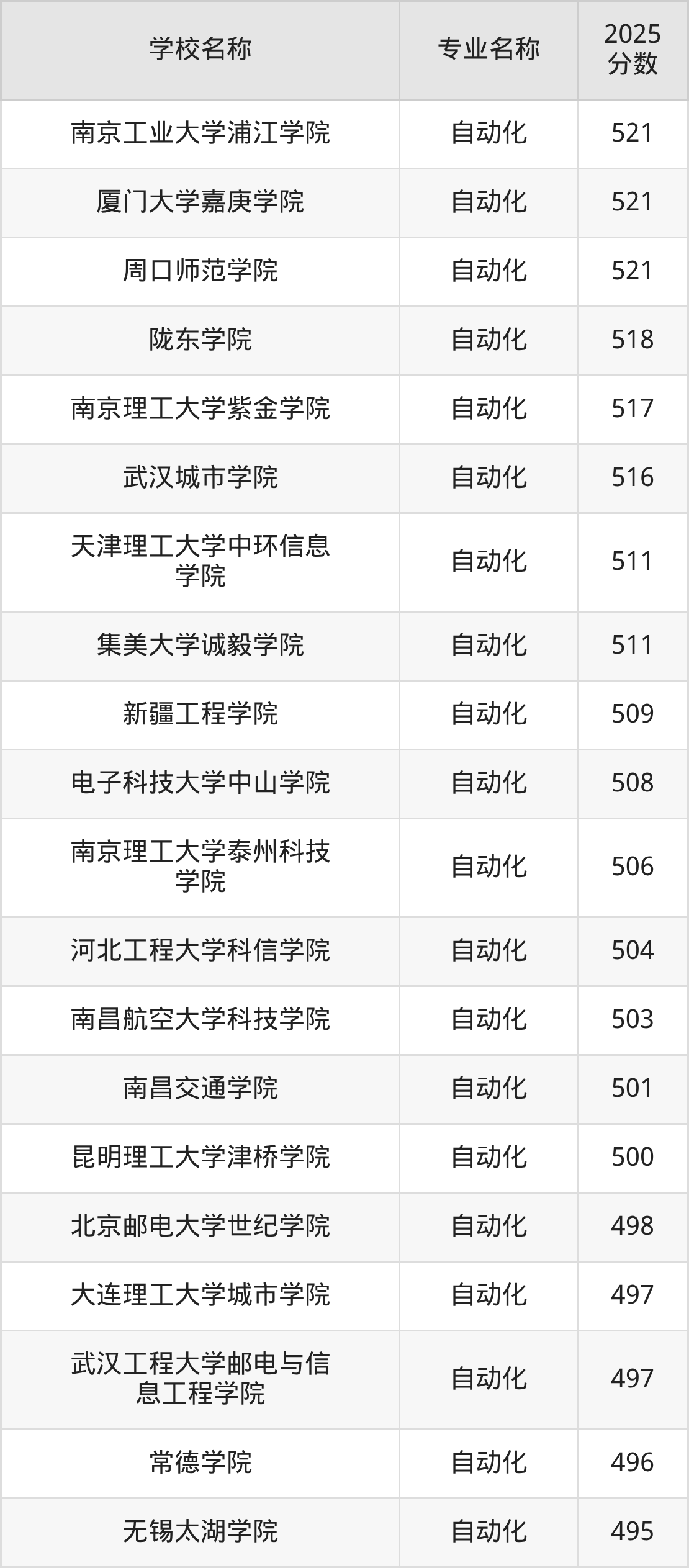 圆梦小编根据浙江2025年高考专业分,将开设了自动化专业且位于浙江省内的大学按照“录取分”从高到低排序,得出了以上榜单。