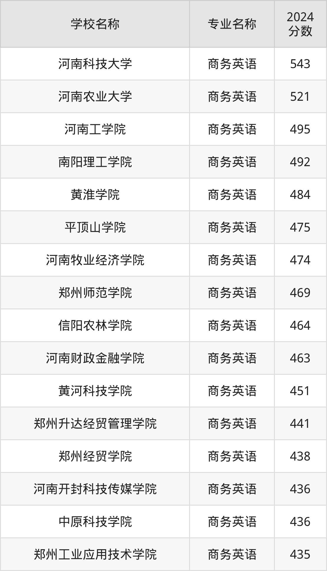| 郑州经贸学院 | 商务英语 | 464 |