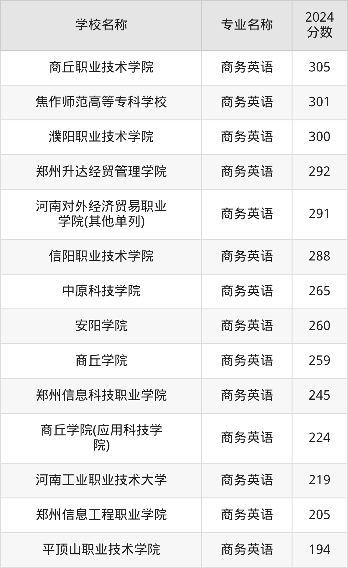 | 河南对外经济贸易职业 学院(其他单列) | 商务英语 | 286 |