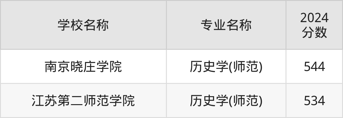 | 江苏第二师范学院 | 历史学(师范) | 544 |